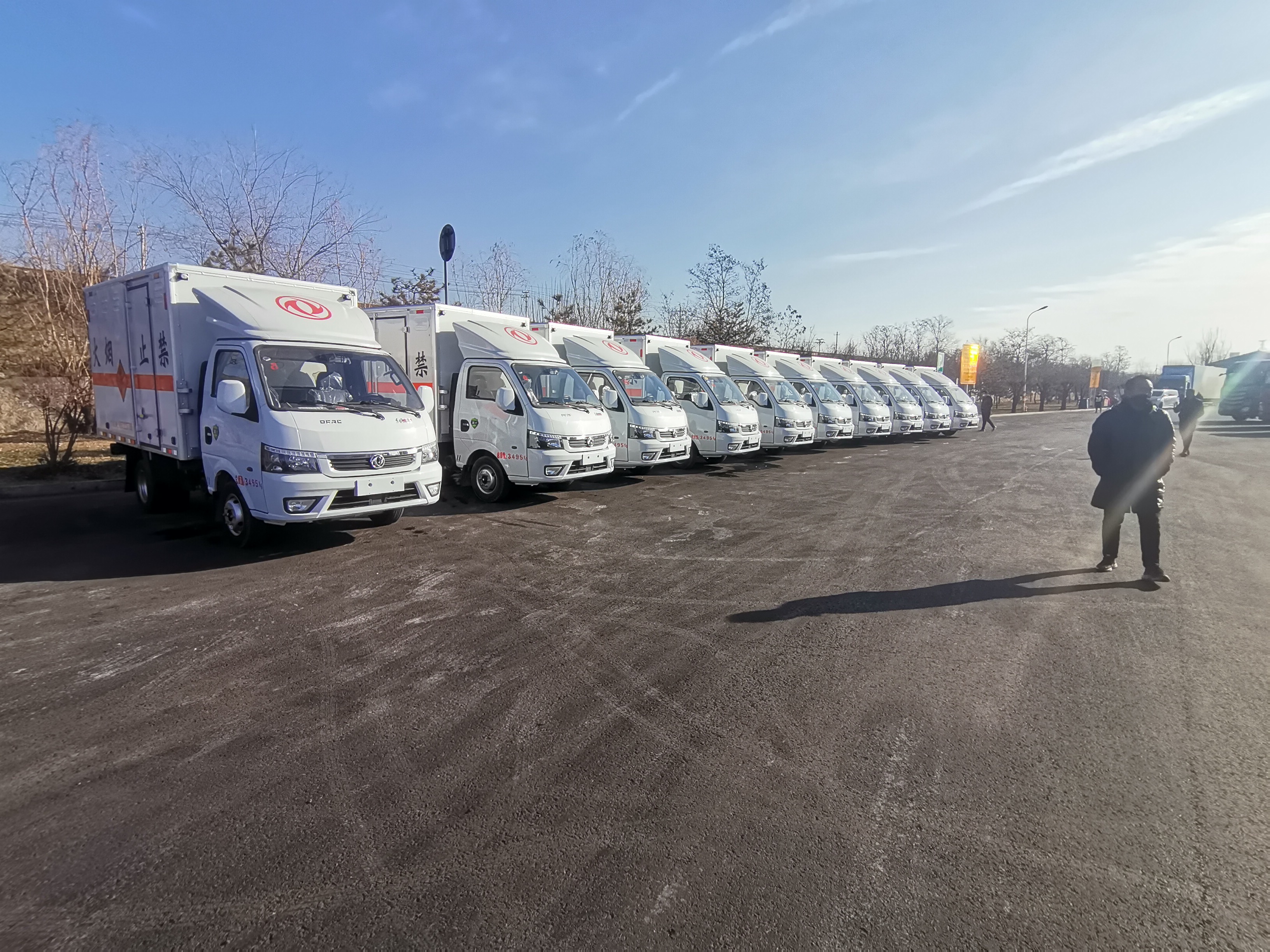 陜西王總訂購六臺東風多利卡易燃氣體廂式車發車