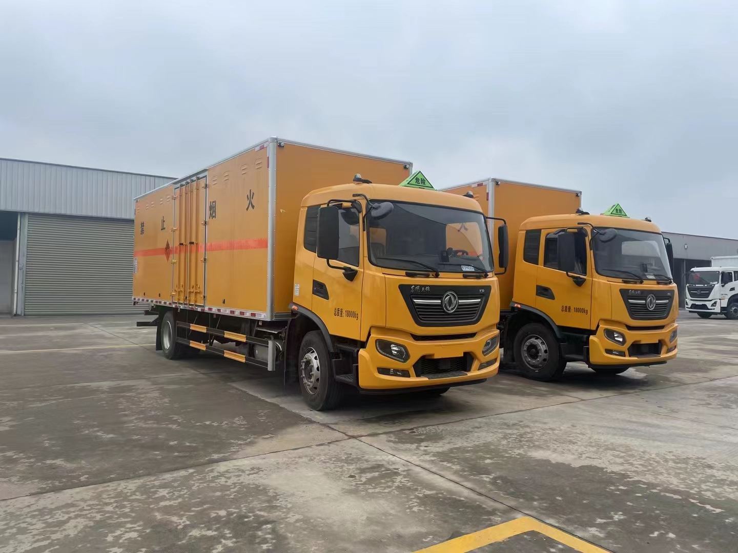 甘肅李總批量訂購2臺東風途逸黃色易燃液體廂式運輸車