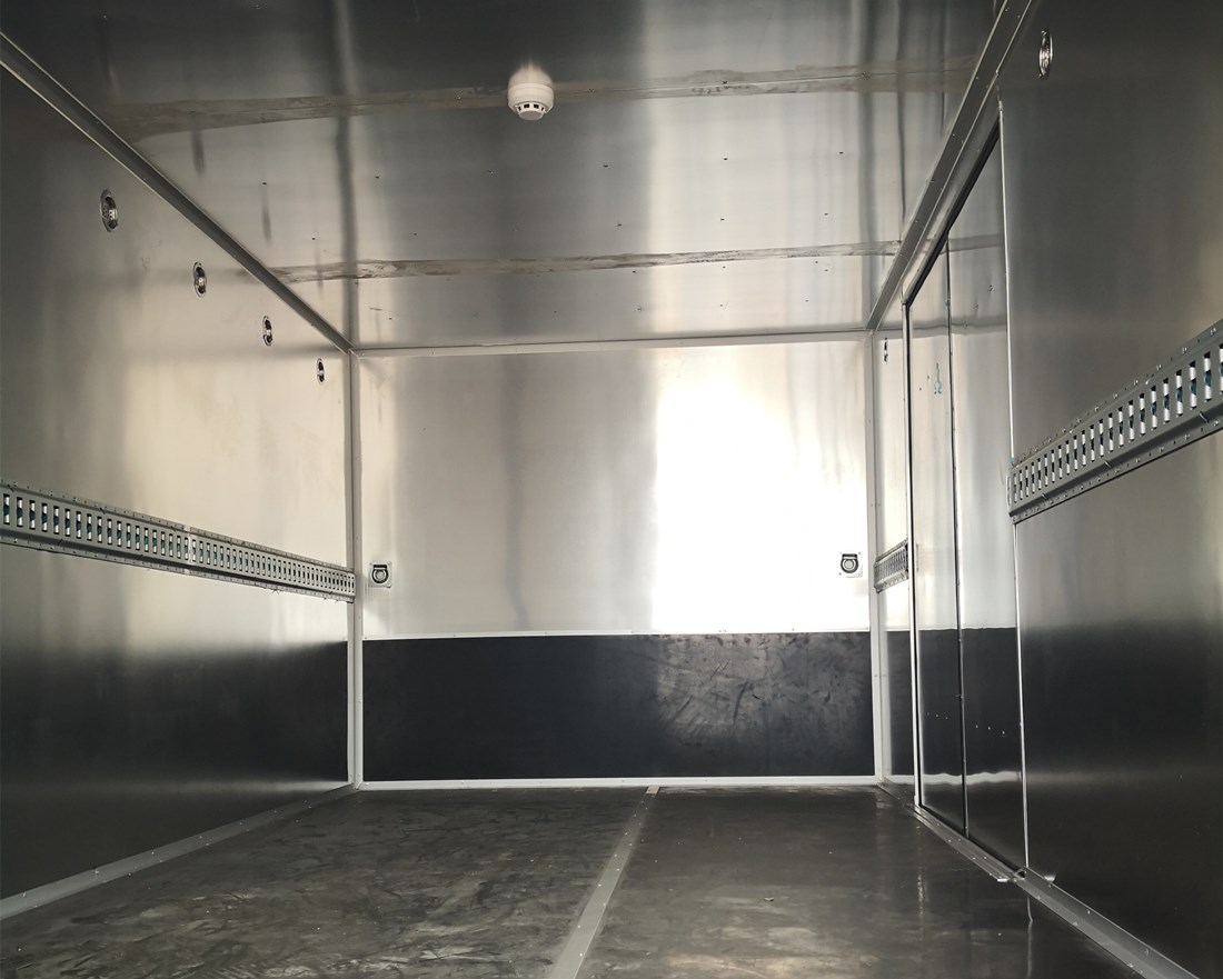 廂體配置:貨廂尺寸為4730X2050X1750(mm)、廂體外飾冷板、內(nèi)飾鋁板、中間為防阻燃泡沫、廂內(nèi)安裝臥環(huán)、煙霧報(bào)警器、防盜報(bào)警器、右邊開側(cè)門、后雙開門、帶拖地靜電帶,其它均按廠標(biāo)組織生產(chǎn);