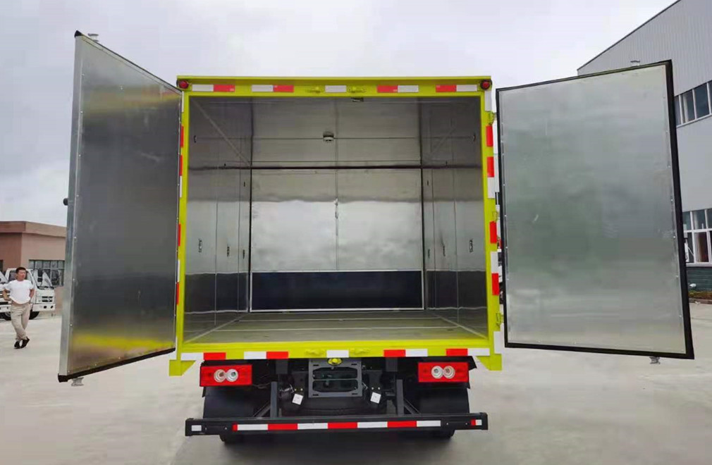 該車適用于運輸危險品。廂體頂部封閉,不可開啟。該車用于運輸具有獨立容器(瓶)包裝的爆炸品。類項號:1.1B,1.1G,1.3C,1.1D,1.2D,1.3C,1.1C,1.4G。