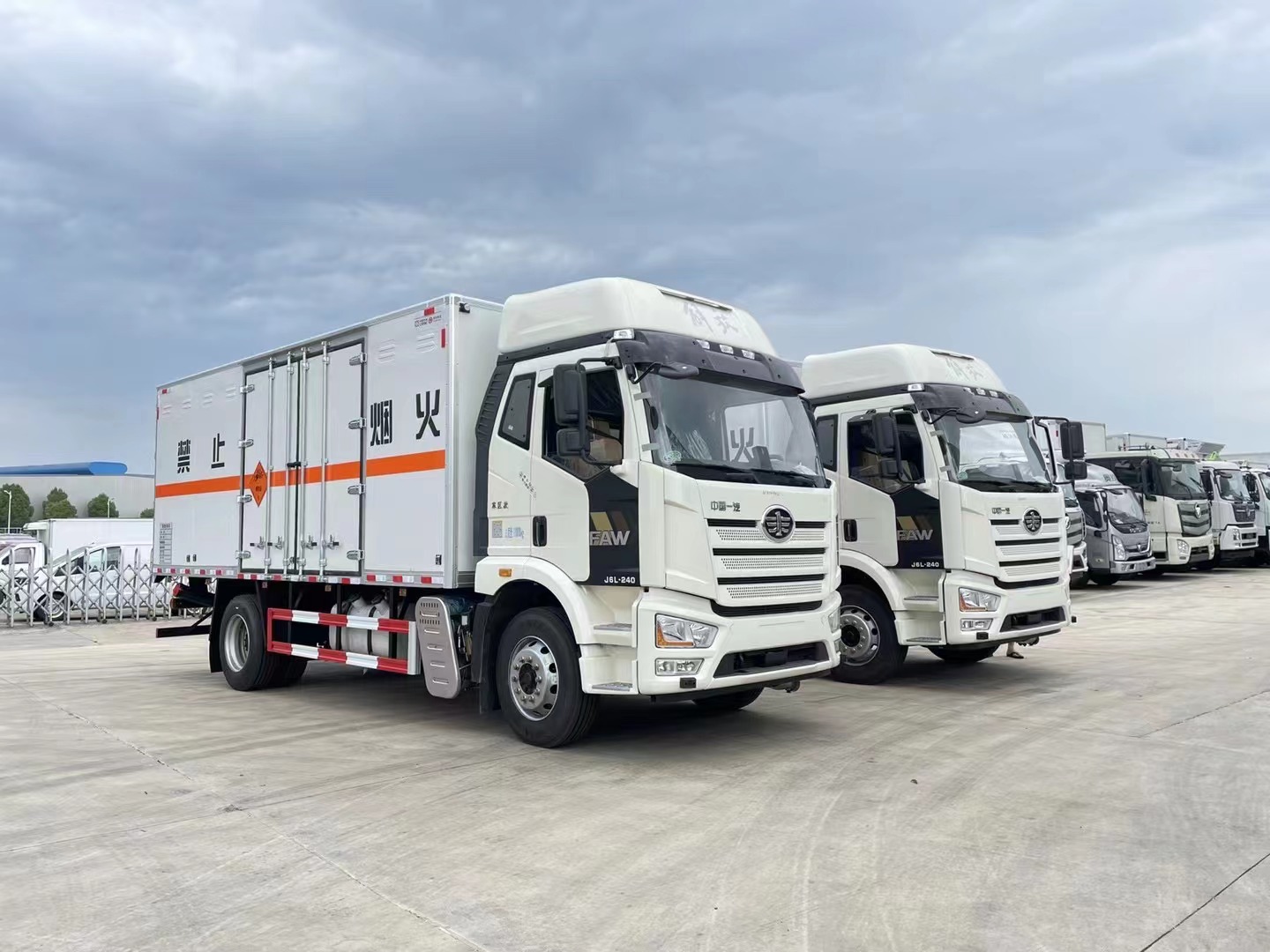嚴格按照公告尺寸制作。外板采用烤漆板帶透氣孔,內飾為導電性能良好的鋁平板有透氣孔,矩形骨架結構內部填充防火阻燃材料,復合加鉚合工藝。廂體四周鋁合金包邊及包角,車廂底板4mm鋪設防靜電膠皮,廂體前臉50公分高鋪設防靜電膠皮。后部設置對開門,右側一組雙開門,廂體內部兩側安裝捆綁貨物的臥環。廂體內部安裝煙霧報**器及防盜報**感應器。車廂一周粘貼橙色反光帶,箱體粘貼 菱形標志牌,安全告示牌,危險品牌,箱體安裝示廓燈(前白后紅),拖地靜電帶。