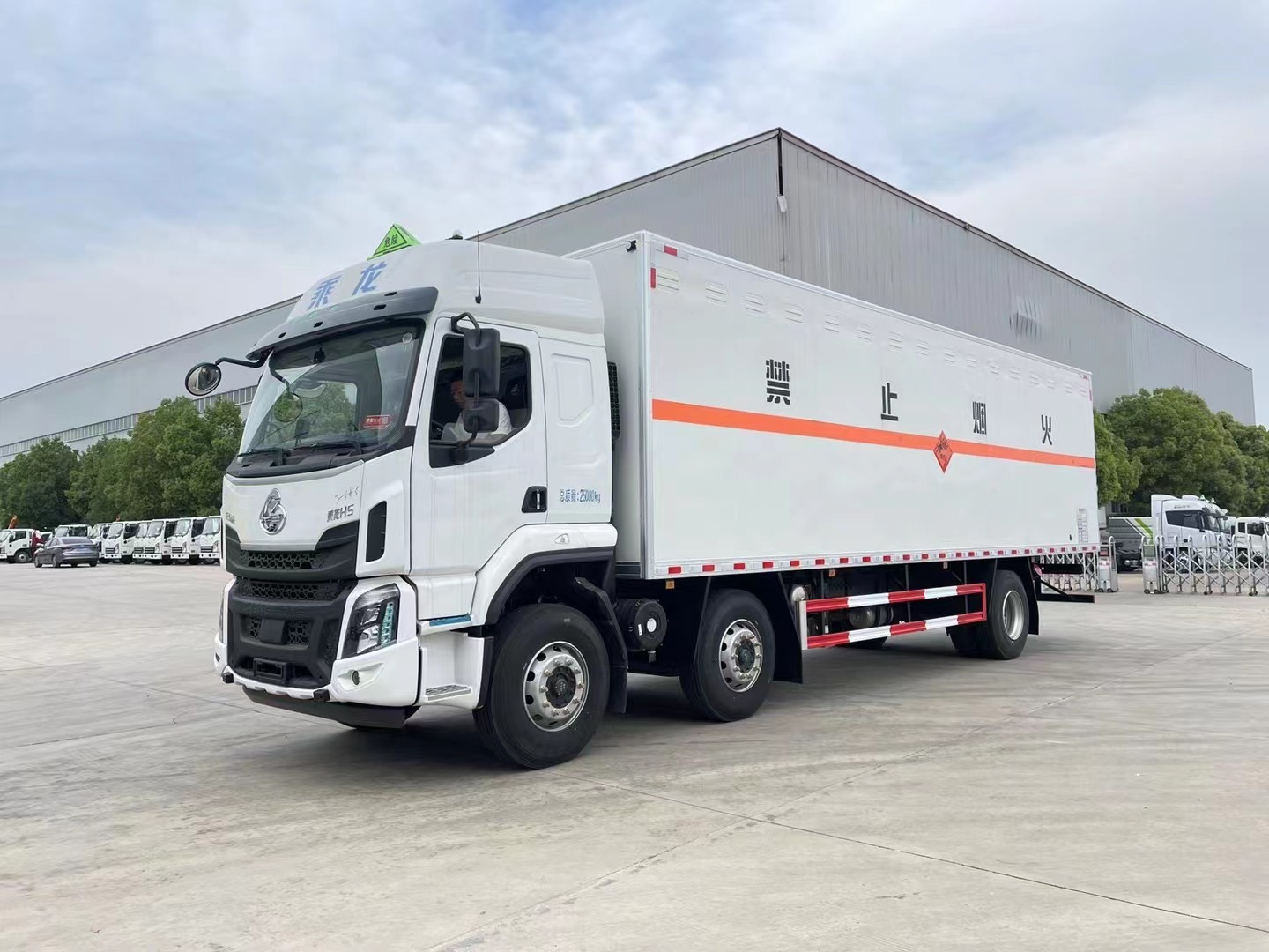 1.該車適用于運輸危險品。廂體頂部封閉,不可開啟。2.運輸具有獨立容器包裝的介質, 危險貨物運輸車輛類型:EX/Ⅲ,危險貨物類別號: 1.1B, 1.1C, 1.1D, 1.1G, 1.2C, 1.2D, 1.2G,1.3G,1.4C,1.4D,1.4G。3.僅選用排氣管前置,前輪盤式制動器,子午線輪胎,后軸空氣懸掛底盤,選用限速裝置,限速80km/h;轉向輪安裝輪胎爆胎應急防護裝置,該車安裝帶有衛星定位功能的行駛記錄儀;安全裝置為導靜電帶,用于防止靜電;該車安裝ETC車載裝置。4.EBS型號/企業: EBS5/東科克諾爾商用車制動系統(十堰)有限公司。 |