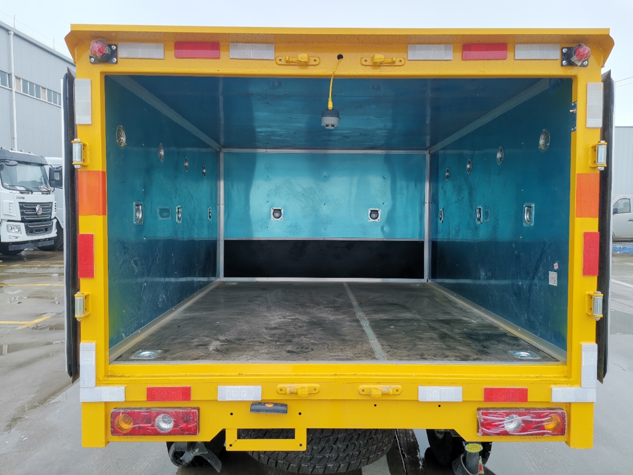 上裝配置:貨廂尺寸為2030X1780X1210(mm)、廂體外飾冷板、內(nèi)飾鋁板、中間為防阻燃泡沫、廂內(nèi)安裝臥環(huán)、煙霧報(bào)警器、防盜報(bào)警器、后雙開(kāi)門(mén)(選裝隔斷及側(cè)開(kāi)門(mén))、帶拖地靜電帶,兩個(gè)滅火器,危險(xiǎn)品警示燈,危險(xiǎn)品標(biāo)牌,其它均按廠標(biāo)組織生產(chǎn)。
