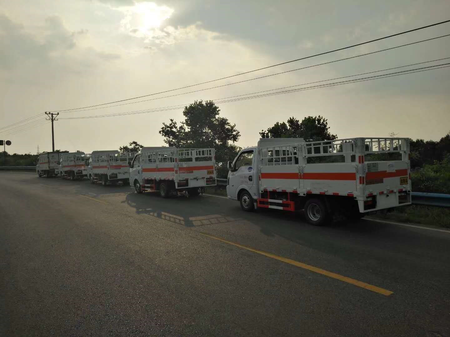江蘇鄧總來程力實地考察,銷售部陳經理接待了鄧總。此次鄧總考察主要是想要訂購5臺氣瓶車,來之前主要是在網上了解過程力沒有實地考察。陳經理帶鄧總參觀了公司生產車間,介紹了車輛參數和購車流程。通過對比,鄧總最終選擇了1臺東風途逸氣體廂式車和4臺高欄式氣瓶車。經過二十天時間,5臺氣瓶車已做好,通過質檢合格準備發車,以下是發車前圖片: