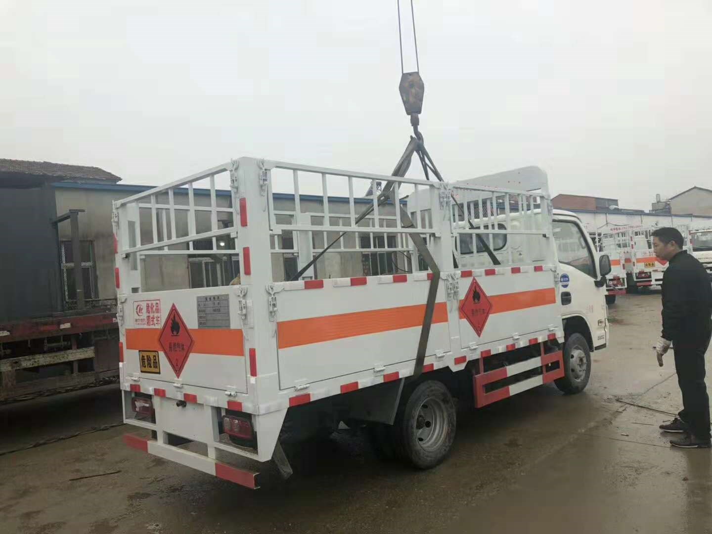 2)廂體配置:貨廂尺寸為3300X1650X600(mm)、邊板對折四開門、外板采用1.2MM厚冷軋板,內襯為矩形管骨架牢靠穩定,底板為3mm厚花紋板,有靜電帶、滅火器、防火罩。躍進氣瓶車廠家直銷熱線:13872880150陳經理/18372237788楊經理,公司網站:www.gzebuy.com.cn。整車國標反光標示及警告標志;