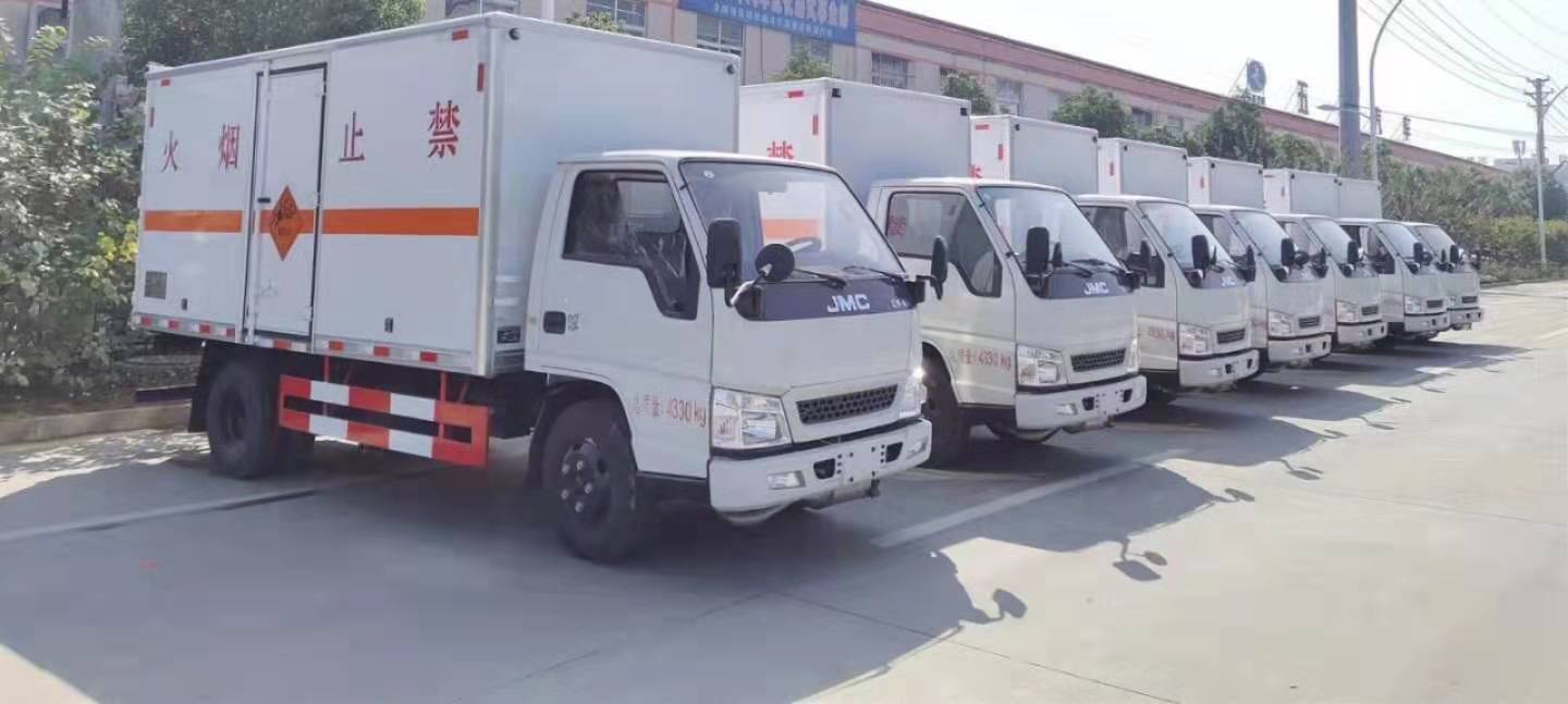 黃金十月,欣欣向榮!危險品車迎來運輸旺季,各地運輸公司紛紛增購危險品運輸車,廣西王總的公司也不例外!王總從事液化氣站運輸多年,公司業務不斷發展壯大,在廣西當地設有多個分支機構!為了滿足運輸要求,王總在我司批量訂購7臺江鈴順達易燃氣體廂式運輸車。通過十天的緊張生產,王總訂購的車輛已全部完工,以下是具體發車實拍: