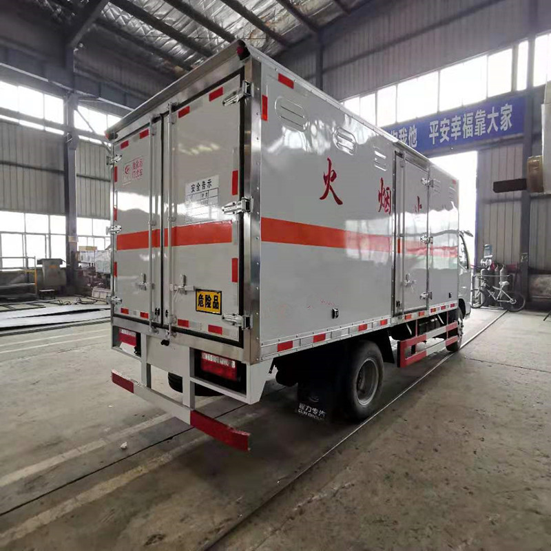 廂體配置:貨廂尺寸為4100X2000X1800(mm)、廂體外飾冷板、內(nèi)飾鋁板、中間為防阻燃泡沫、廂內(nèi)安裝臥環(huán)、煙霧報(bào)警器、防盜報(bào)警器、右邊開側(cè)門、后雙開門、帶拖地靜電帶。