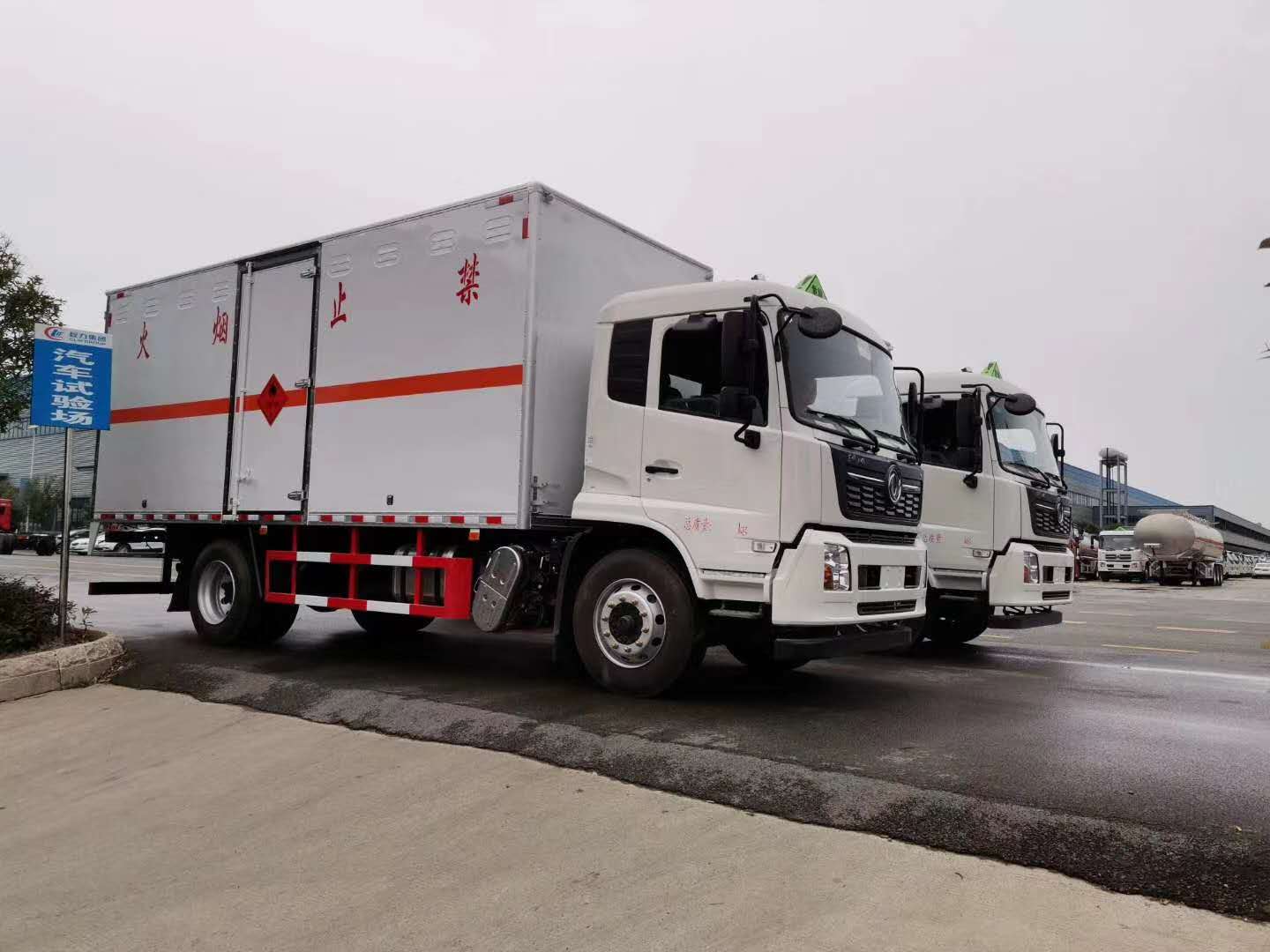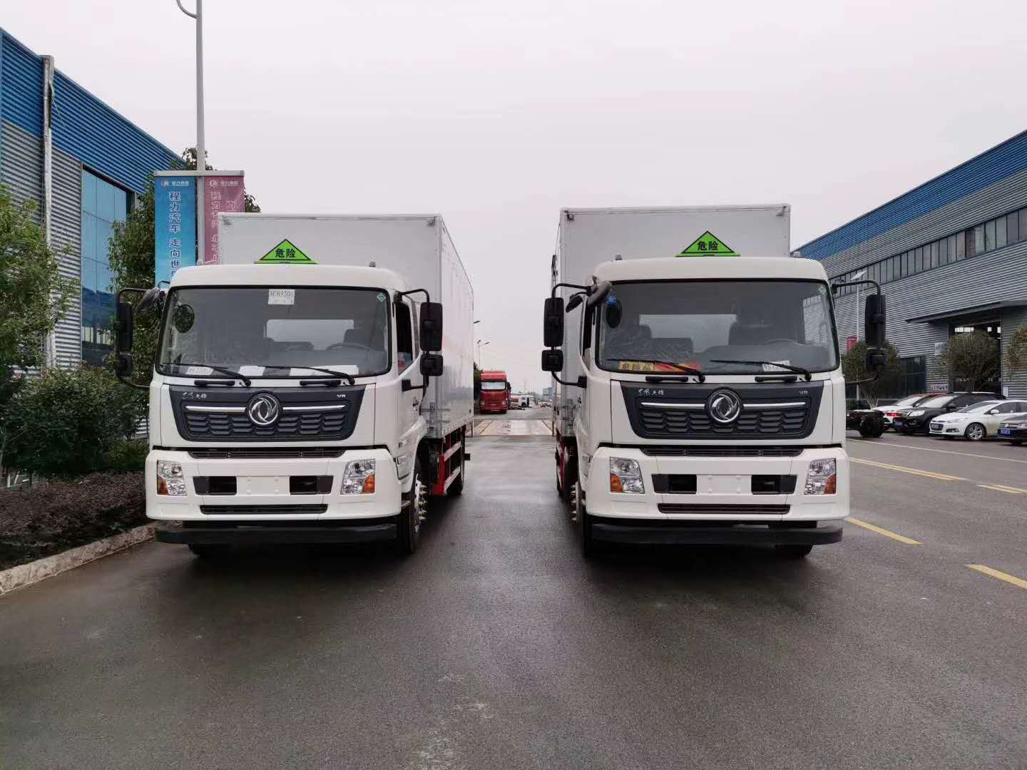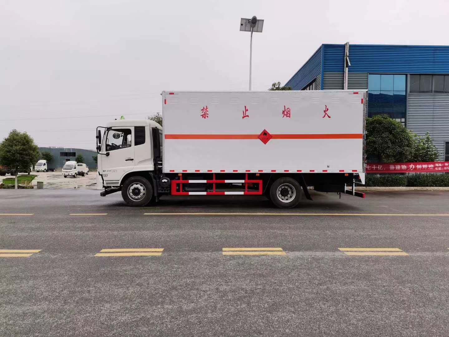 東風天錦KR國六危險品車車廂采用外飾冷軋鋼板(隔熱,防靜電),中間骨架結構(提高箱體強度),內飾鍍鋅板,經現代工藝復合而成,底板為防靜電膠皮(絕緣,導靜電),前臉為百葉窗,內飾固定帶及防撞條,通氣孔,外部帶通風孔,(保持廂體與外部空氣流通,及時與外部空氣交換,確保安全),底盤大梁加裝拖地靜電膠帶,車廂配備防盜報警器,煙霧報警器,滅火器等。貨廂前后兩個示廓燈,排氣管尾端安裝排氣火花熄滅器,駕駛室安裝危險品三角標志燈,車聲側面及后部粘貼橙色反光標識,易燃氣體菱形標示,車體后部設置危險標志牌,后保險杠安裝緩沖加強橡膠塊