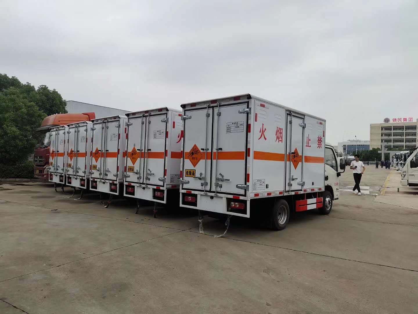 甘肅周總從事民爆器材運輸多年,為了方便短途運輸,周總增訂了五臺躍進爆破器材運輸車。因國五交替國六,很多地方總質量小于3.5噸的危險品車上不了戶,為了盡快交車,我司加班加點對車輛進行生產,周總訂購的五臺躍進國五爆破器材運輸車如期交付,以下是具體實拍: