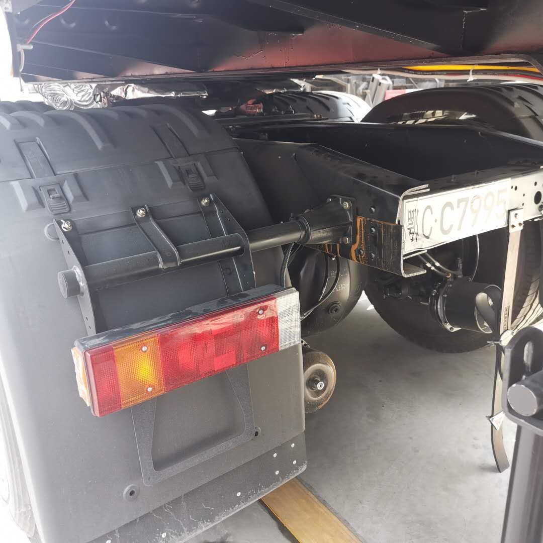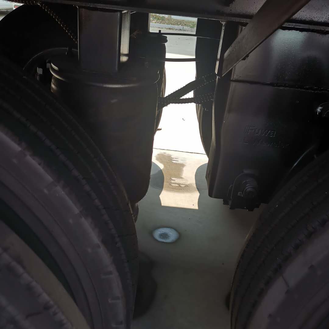9類雜項半掛危險品車采用程力公司生產的輕量化危險品專用三橋半掛底盤,13噸富華車轎帶盤式制動器(富華16噸剎車片),1軸3軸配ABS 防抱死系統,成山12R22.5真空胎(12條),4片板簧,富華28噸聯動支腿 ,90牽引銷。