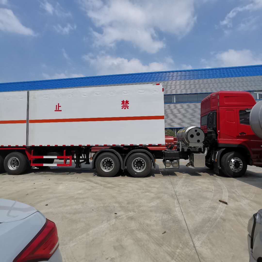 危險品9類雜項廂式半掛運輸車可選擇10.6米廂長,也可以根據客戶需求定制12.4米,選裝翼開啟或密封式均可。目前我司已更新了新規車型,可在全國各地上戶,支持分期付款,歡迎各新老客戶來電咨詢!