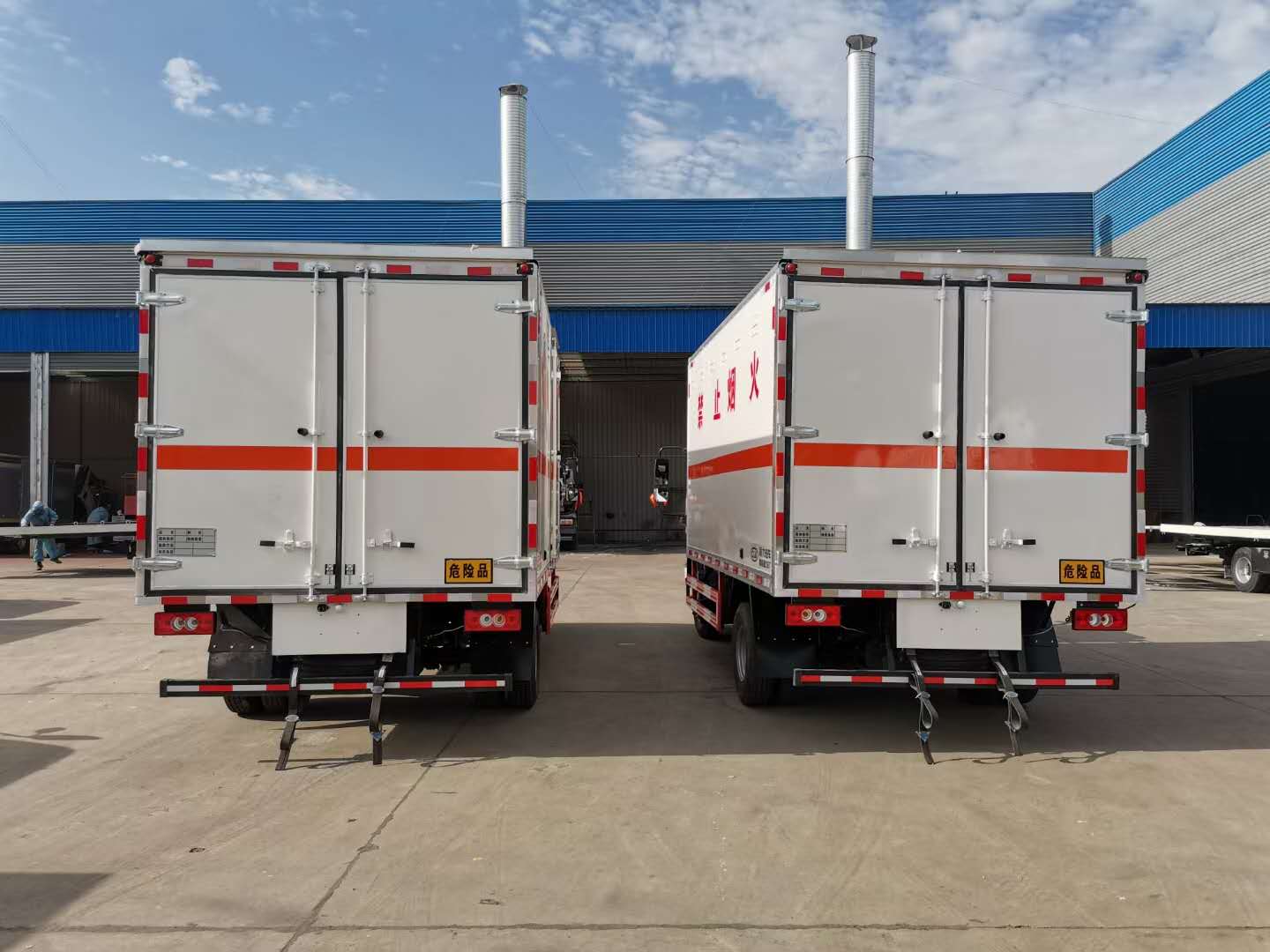 福田奧鈴國六危險品車該車配置有排氣管前置、前盤后鼓、帶防爆胎裝置、剎車襯片預警提示、安全帶未系提醒,新規的底盤給您不一樣的體驗感。車廂采用車廂嚴格按照公告尺寸制作,外板采用1mm厚冷軋板有一次性成型的百葉窗,內飾為導電性能良好的鋁板有透氣孔,內襯為矩形管骨架牢靠穩定,內部填充為透氣防潮阻燃的擠塑板,四種材料經現代工藝復合而成,廂體外部上下鋁合金型材包邊,底板和車廂前下部鋪橡膠皮,后門雙開,右側中部單開門,內部有固定貨物的臥環,車輛外部有靜電帶、滅火器、防火罩,車廂內安裝煙霧報警器和門防盜報警器,嚴格按照國家危險品相關法規張貼。