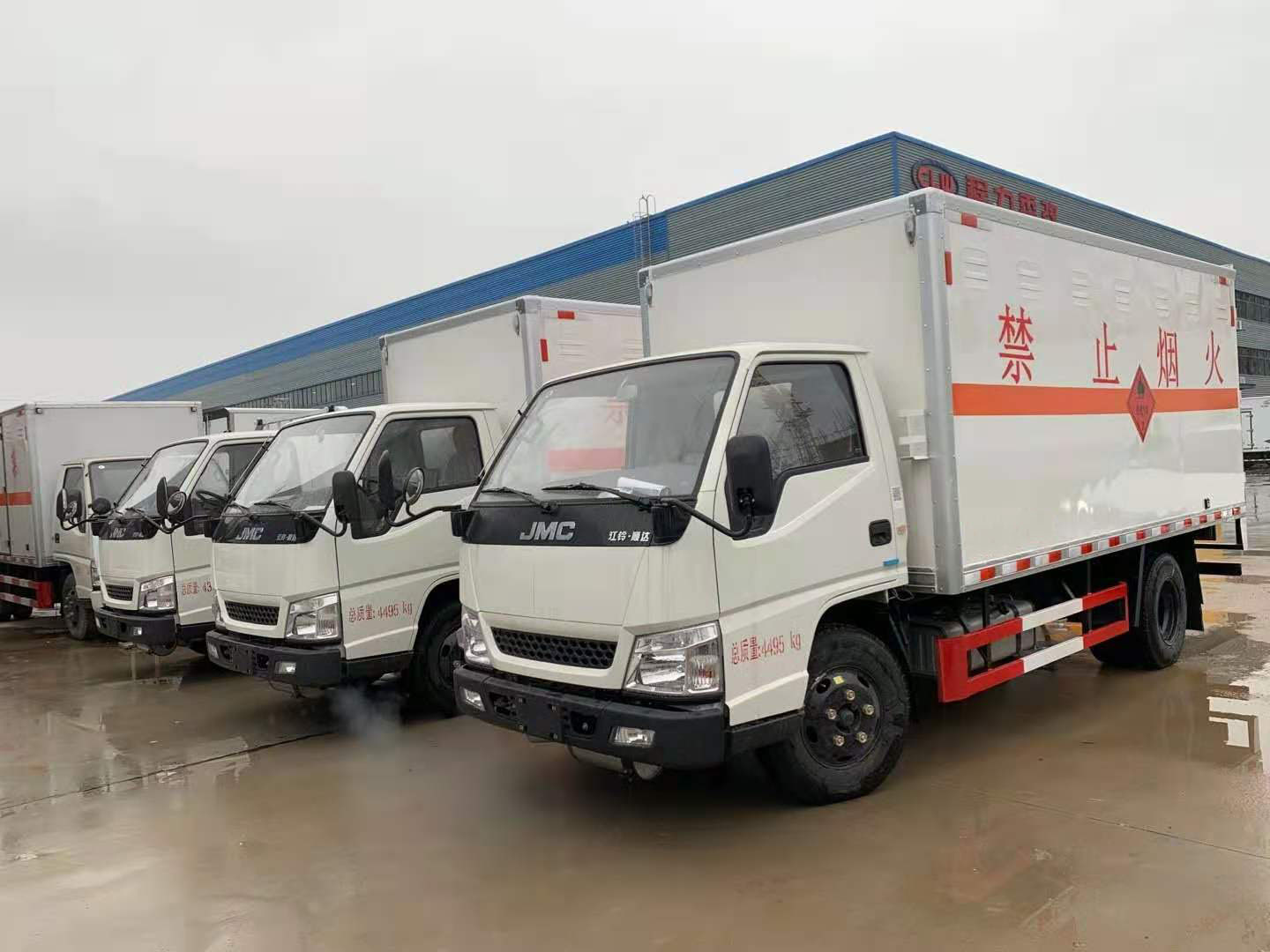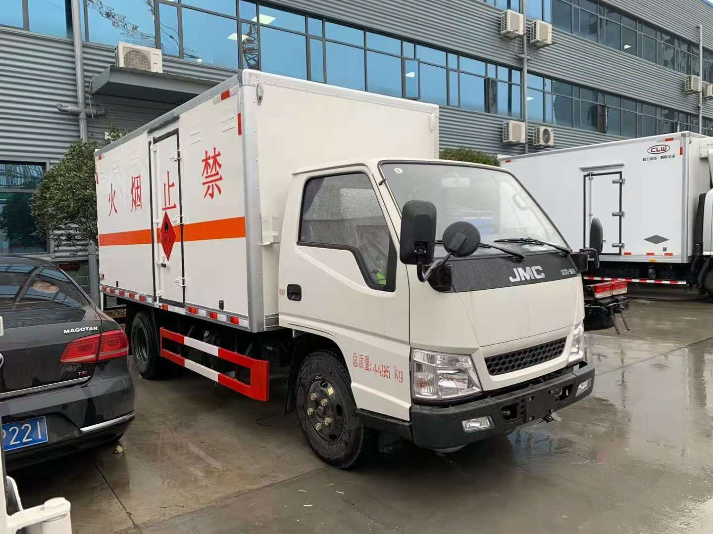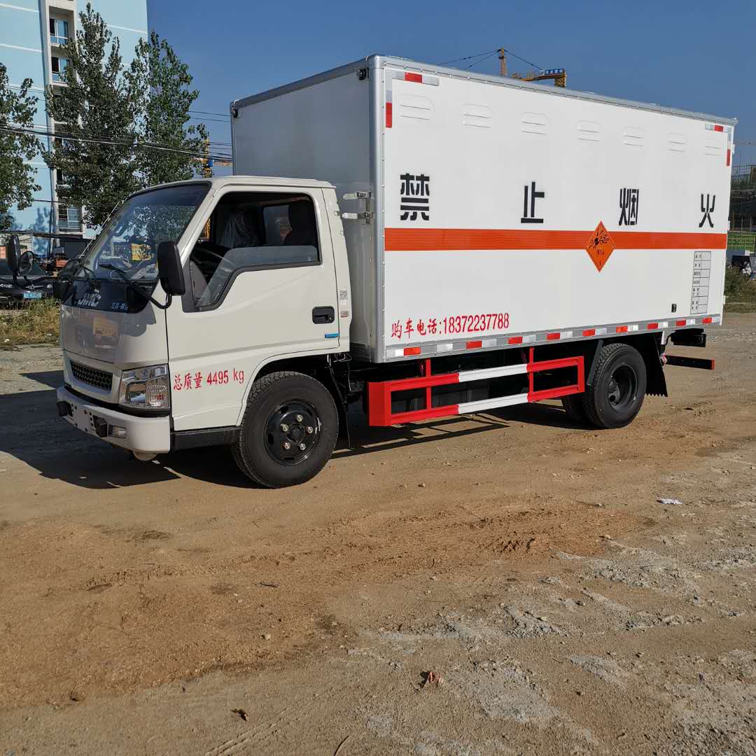 江鈴國(guó)五危險(xiǎn)品車(chē):整車(chē)尺寸:5995×2040×2880(mm)貨箱尺寸:4130×1870×1750(mm)。底盤(pán)配置:五十鈴115馬力國(guó)五發(fā)動(dòng)機(jī),帶方向助力,5檔變速箱,排氣管前置,前盤(pán)后鼓,ABS。箱體采用三明治結(jié)構(gòu),外厚度為1.5毫米厚度武鋼冷軋鋼板,中鋼骨架,內(nèi)為鋁合金平板,中間填充防火阻燃材料,箱體厚度為5公分,箱體外表上方采用模壓成型帶防水通風(fēng)功能百葉窗,內(nèi)部為細(xì)孔式通風(fēng)蓋,固定貨物的臥式拉環(huán)鉚接在鋼骨架上,牢固可靠,箱體自下向上80公分處和底板均采用5毫米厚度絕緣墊皮,防止靜電產(chǎn)生火花,保證安全。箱體頂板安裝高敏度煙霧報(bào)警器和駕駛室報(bào)警系統(tǒng)相連接,防止事故的發(fā)生。門(mén)內(nèi)安裝高精度限位裝置和駕駛室內(nèi)部報(bào)警器相連接,杜絕箱門(mén)未鎖緊情況。箱體外部箱門(mén)打開(kāi)處安裝防自關(guān)門(mén)的限位風(fēng)勾,箱體外觀涂裝醒目黃色油漆,在箱體的左、右、后部粘貼紅色“易燃?xì)怏w”字標(biāo)識(shí)。箱體前部安裝兩個(gè)掛滅火器的掛桶和配備兩只滅火器,后保險(xiǎn)杠處安裝防追尾事故的緩沖固定塊,駕駛室內(nèi)部安裝安全報(bào)警器連接后部箱體,對(duì)箱體內(nèi)部實(shí)施安全監(jiān)控。廂體顏色可選。