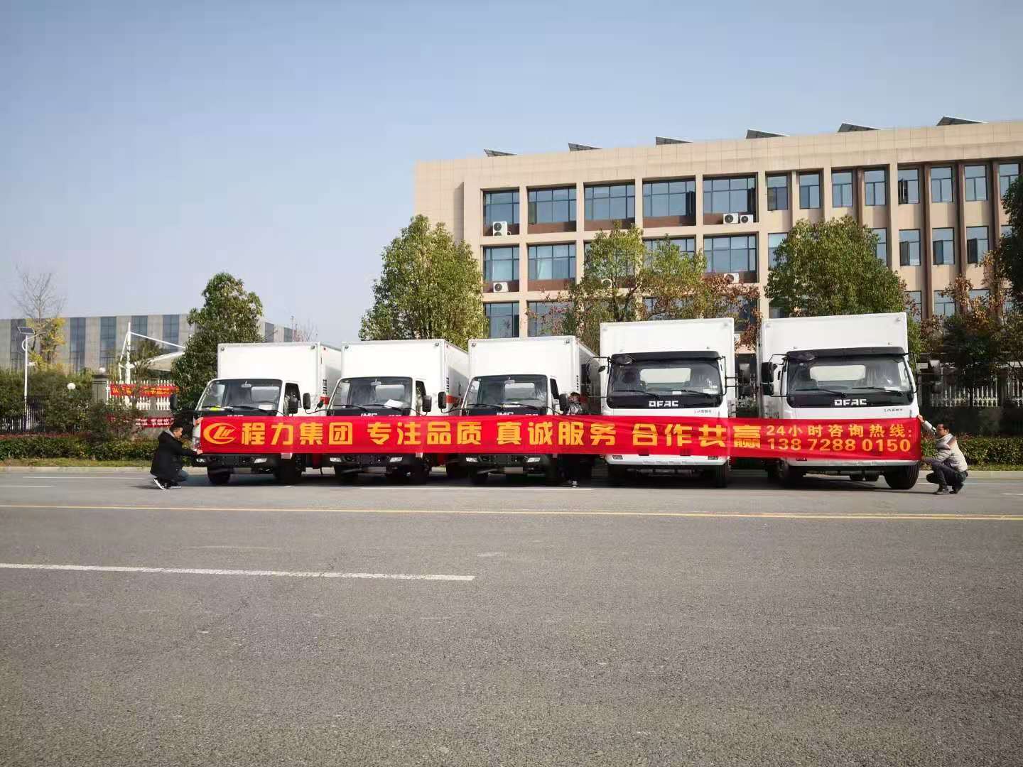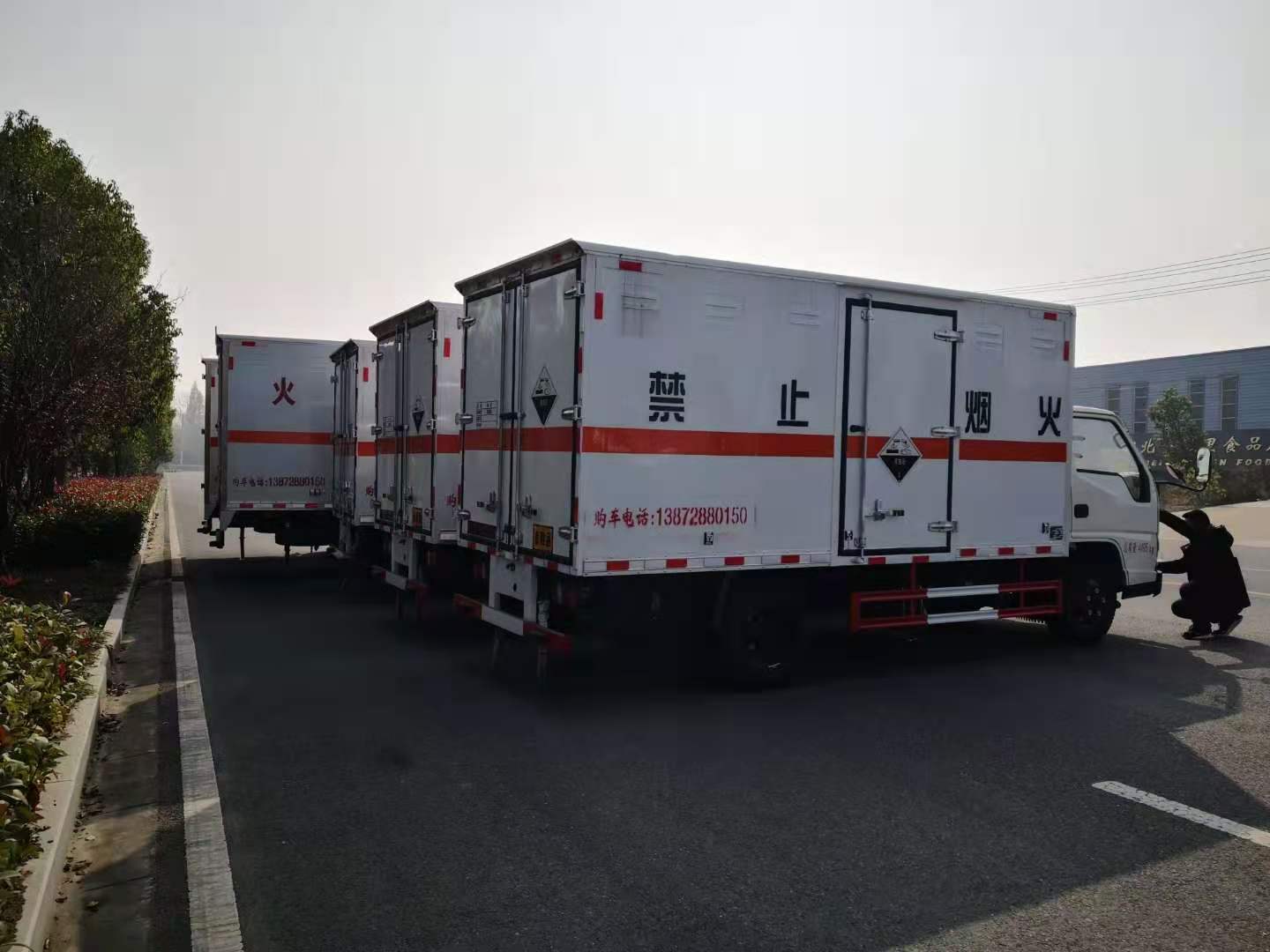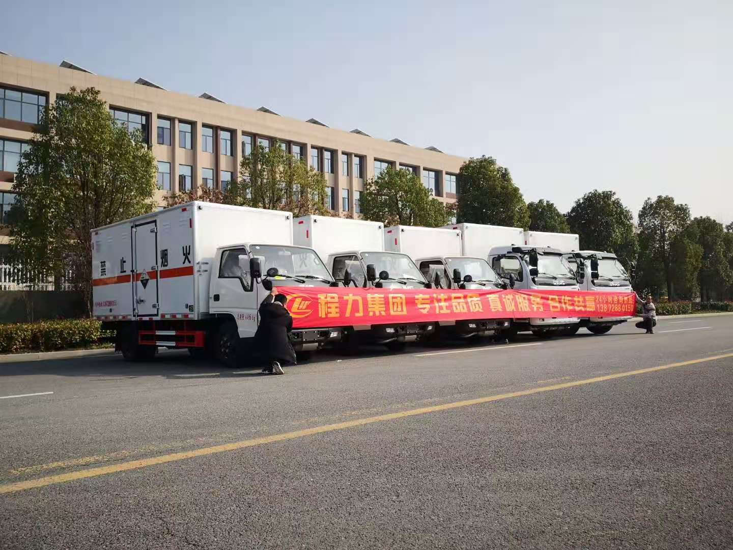 危險品車專車專用,很多客戶都紛紛由普貨轉為危貨,市場上使用危貨車的客戶越來越多。甘肅王總從事腐蝕品運輸多年,因公司業務擴展在我司增購了5臺腐蝕品廂式運輸車。程力專汽陳經理根據客戶需求推薦了江鈴藍牌危險品車和東風大多利卡危險品車,王總覺得非常滿意立即與我司簽訂了合同。為了不耽誤王總用車,我司加班加點為其趕制了車輛,以下是具體發車實拍: