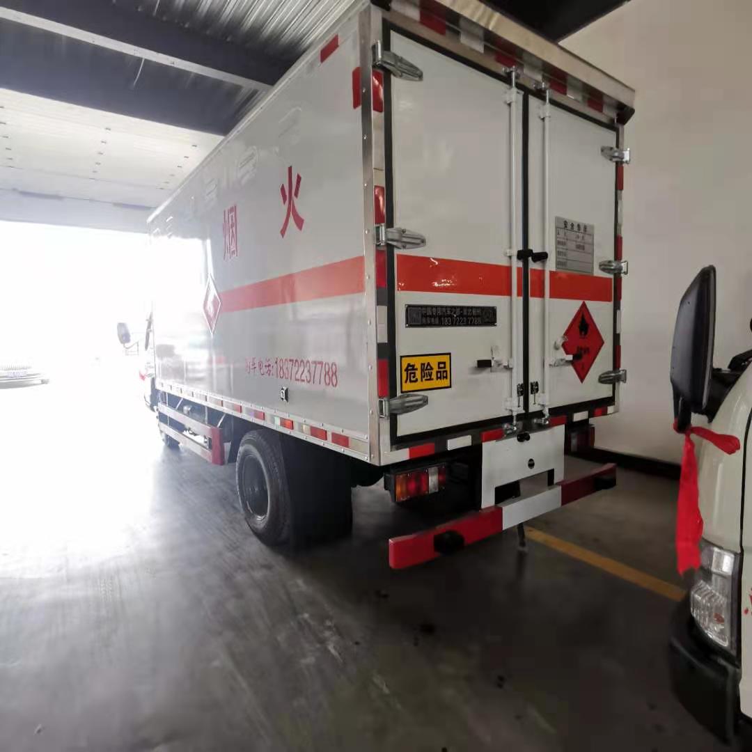 江鈴三類危險品車采用江鈴原廠危貨底盤,白色駕駛室,江鈴115馬力柴油發動機,5檔變速箱,3360軸距,7.00R16輪胎,油剎。廂體為金屬骨架結構,廂體生產工藝采用3mm底板,上鋪靜電膠皮,內外采用靜電屏蔽武鋼優質冷軋鋼板,中間填充B1級阻燃泡沫,配備隨車工具,滅火器,三角頂燈,防火帽,防靜電拖帶,貼反光標識等。