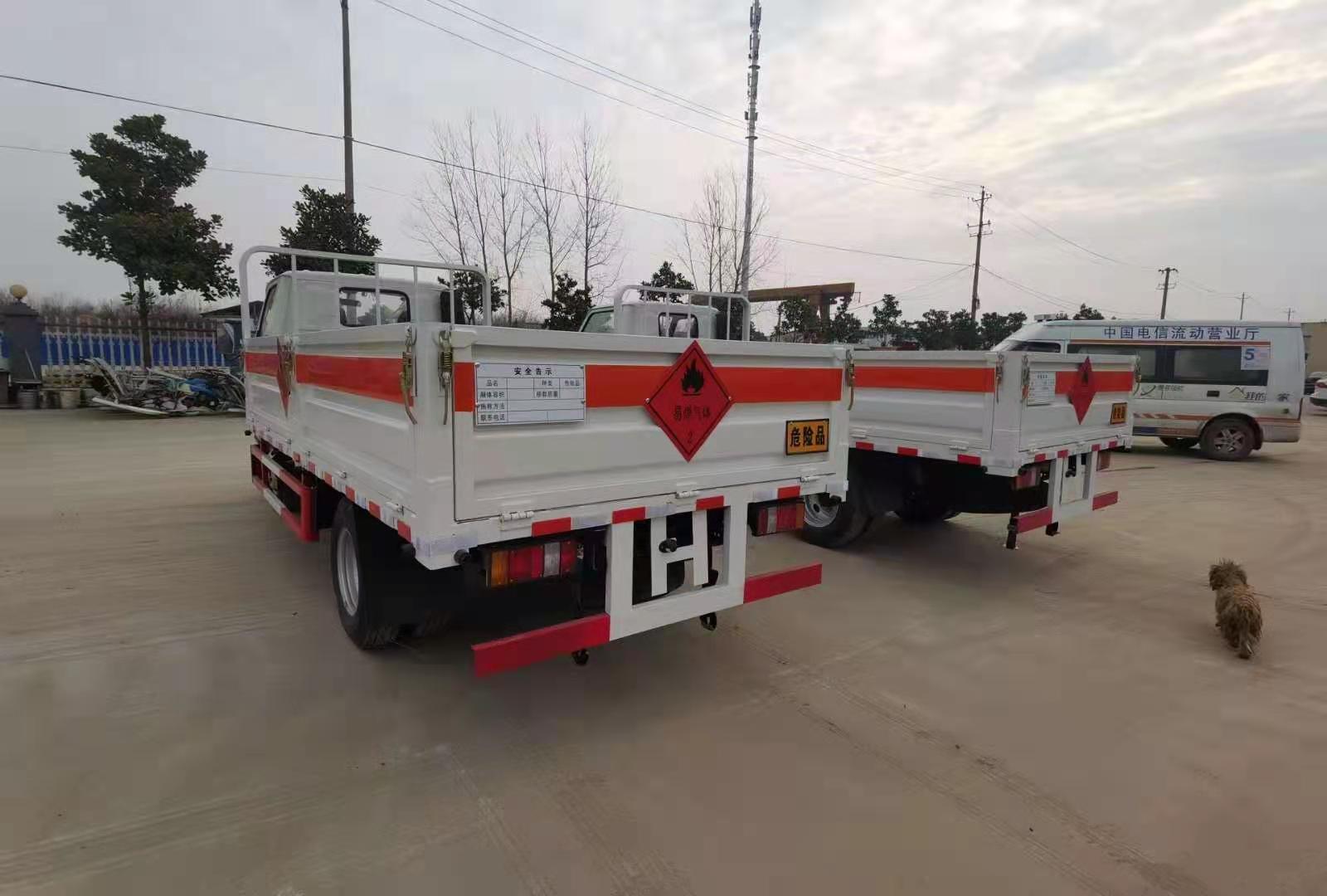 江鈴國六氣瓶運輸車采用江鈴原裝危貨底盤,單排駕駛室,五十鈴115馬力發動機、國六排放標準、5檔變速廂,方向助力,7.00R16輪胎,帶前盤制動、ABS、限速裝置,排氣管前置。大燈調節裝置,剎車間隙裝置,防飛濺裝置。嚴格按照公告尺寸制作,邊2底3材質,底板上鋪靜電膠皮,帶可卸式高欄,配備滅火器,三角頂燈,靜電拖帶等,嚴格按照國家危險品法規進行“易燃氣體”標識粘貼等。裝卸貨物更方便可靠。
