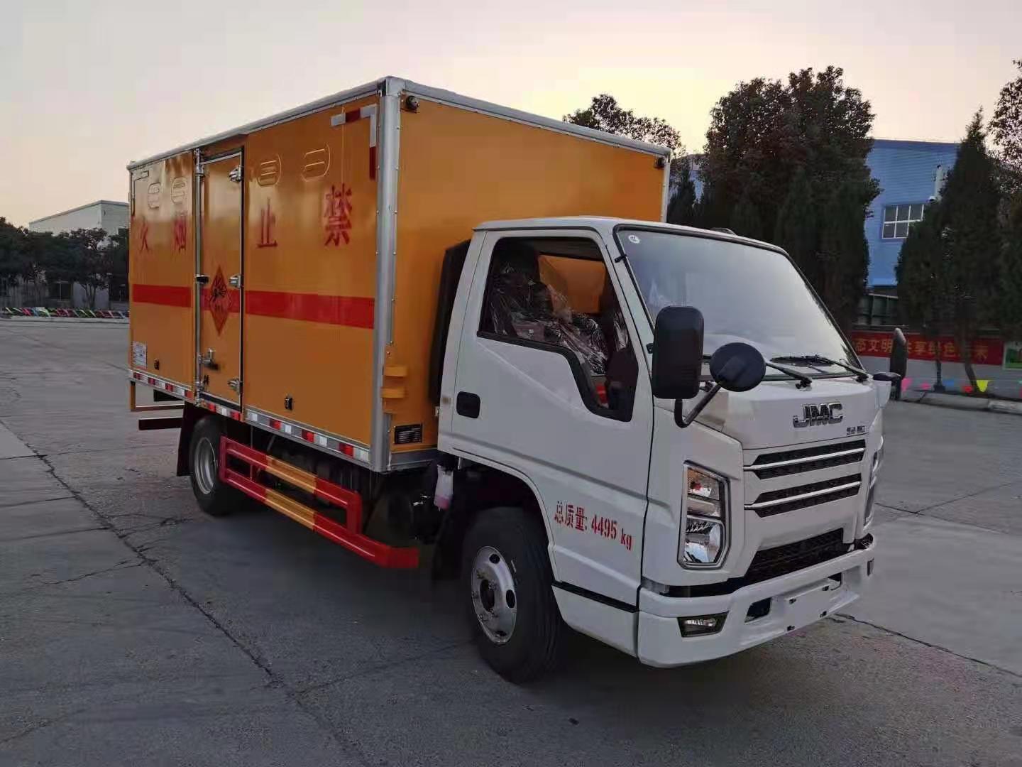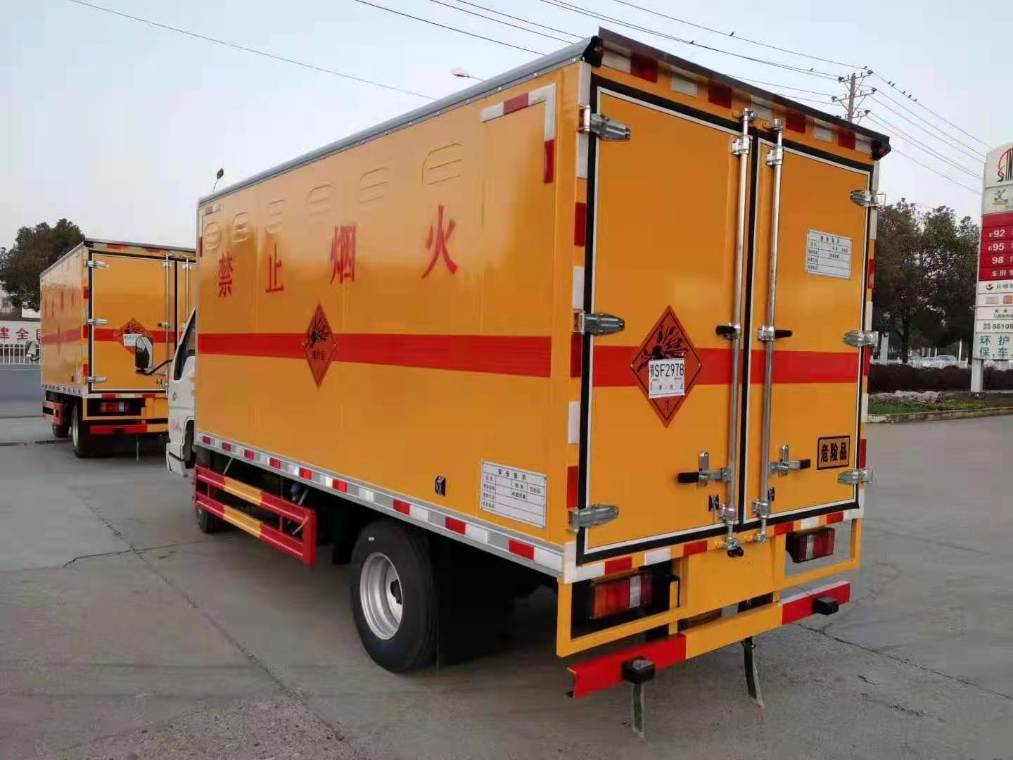江鈴國六防爆車廂體嚴格按照公告尺寸制作,外板采用1mm厚冷軋板有一次性成型的百葉窗,內飾為導電性能良好的鋁板有透氣孔,內襯為矩形管骨架牢靠穩定,內部填充為透氣防潮阻燃的擠塑板,四種材料經現代工藝復合而成,廂體外部上下鋁合金型材包邊,底板和車廂前下部鋪橡膠皮,后門雙開,右側中部單開門,內部有固定貨物的臥環,車輛外部有靜電帶、滅火器、防火罩,車廂內安裝煙霧報警器和門防盜報警器,嚴格按照國家危險品相關法規張貼。