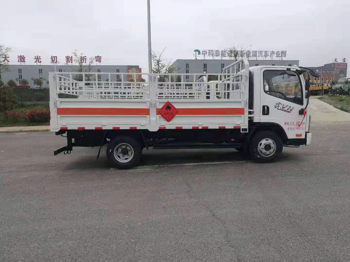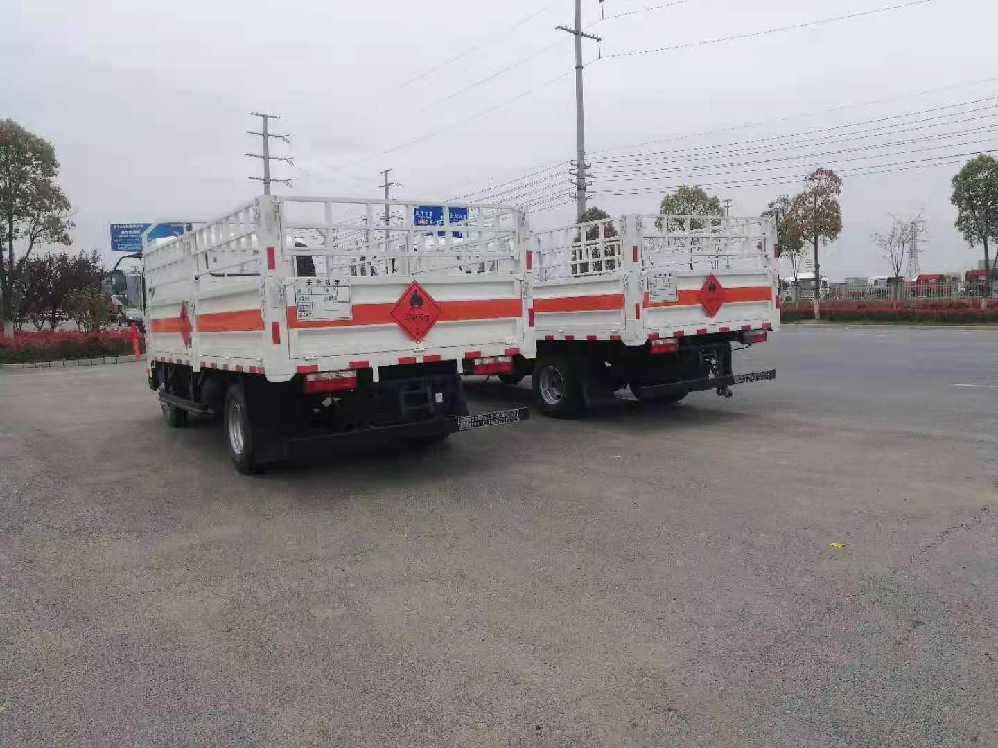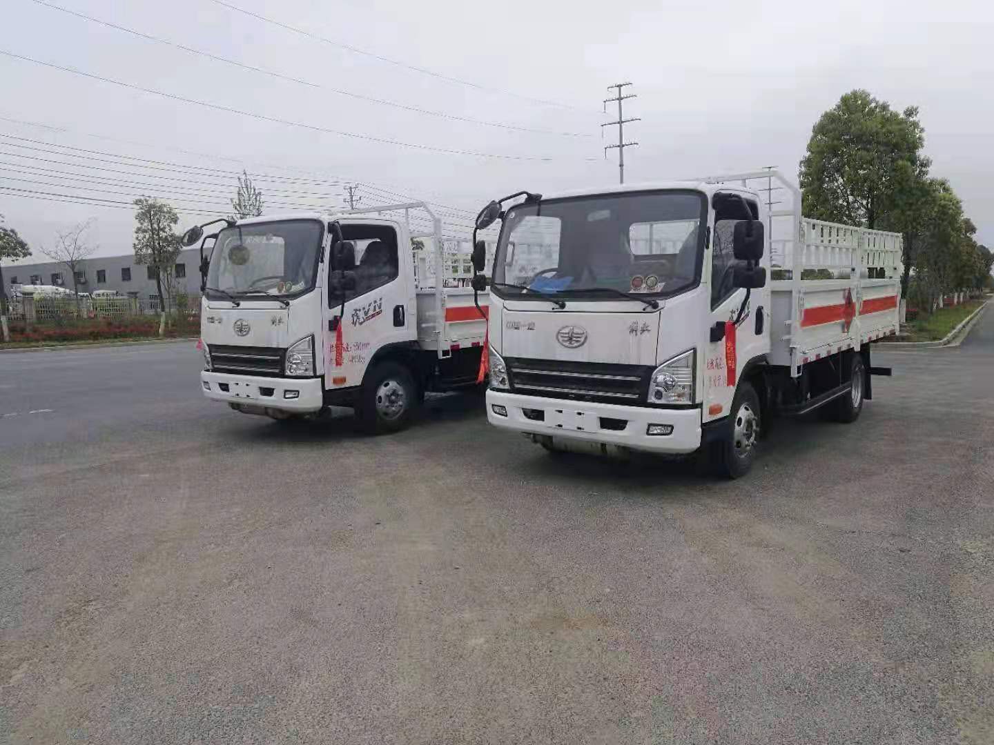 解放氣瓶車嚴格按照公告尺寸制作,貨箱可選低欄板式貨箱和可拆卸式花欄式貨箱,底板上鋪靜電膠皮,嚴格按照國家危險品法規進行“易燃氣體”標識粘貼,隨車配備手提滅火器,危險品三角頂燈,防火帽等。帶整車合格證、隨車工具、服務手冊、保修手冊。