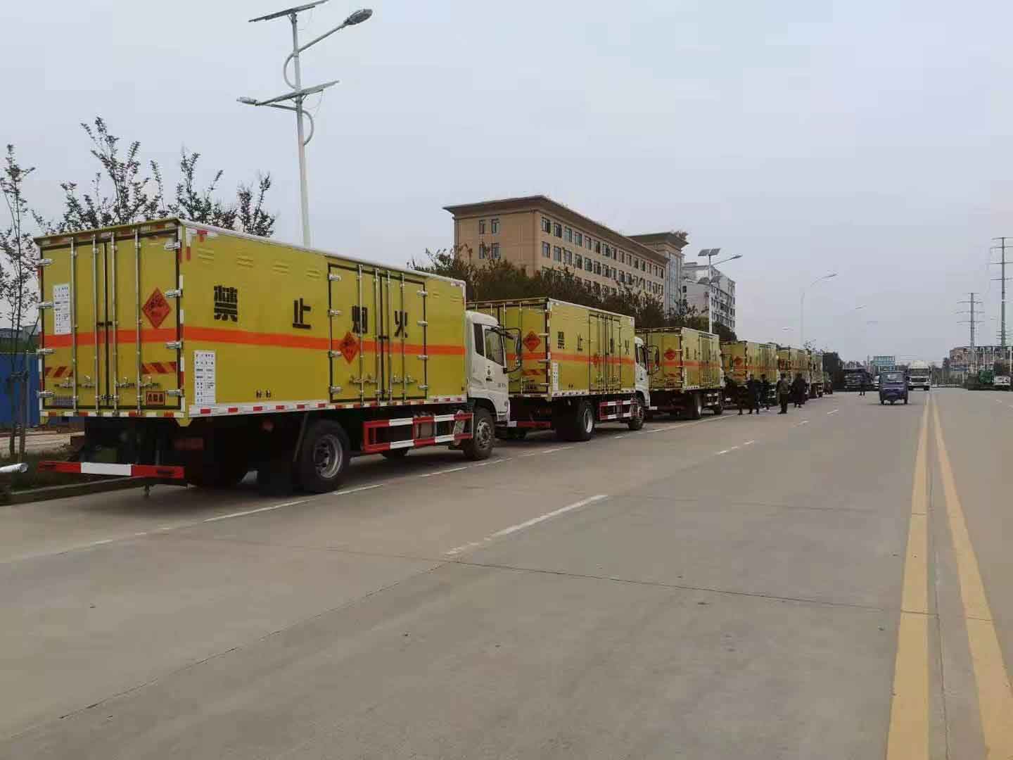 民爆危險品車是目前市場上使用非常廣泛的車型,該車主要在工地上使用非常多。近日,河北雷總因為礦上開采,需要運輸煙火及炸藥,在我司批量采購了6臺東風(fēng)天錦一類危險品車,以下是具體發(fā)車實拍: