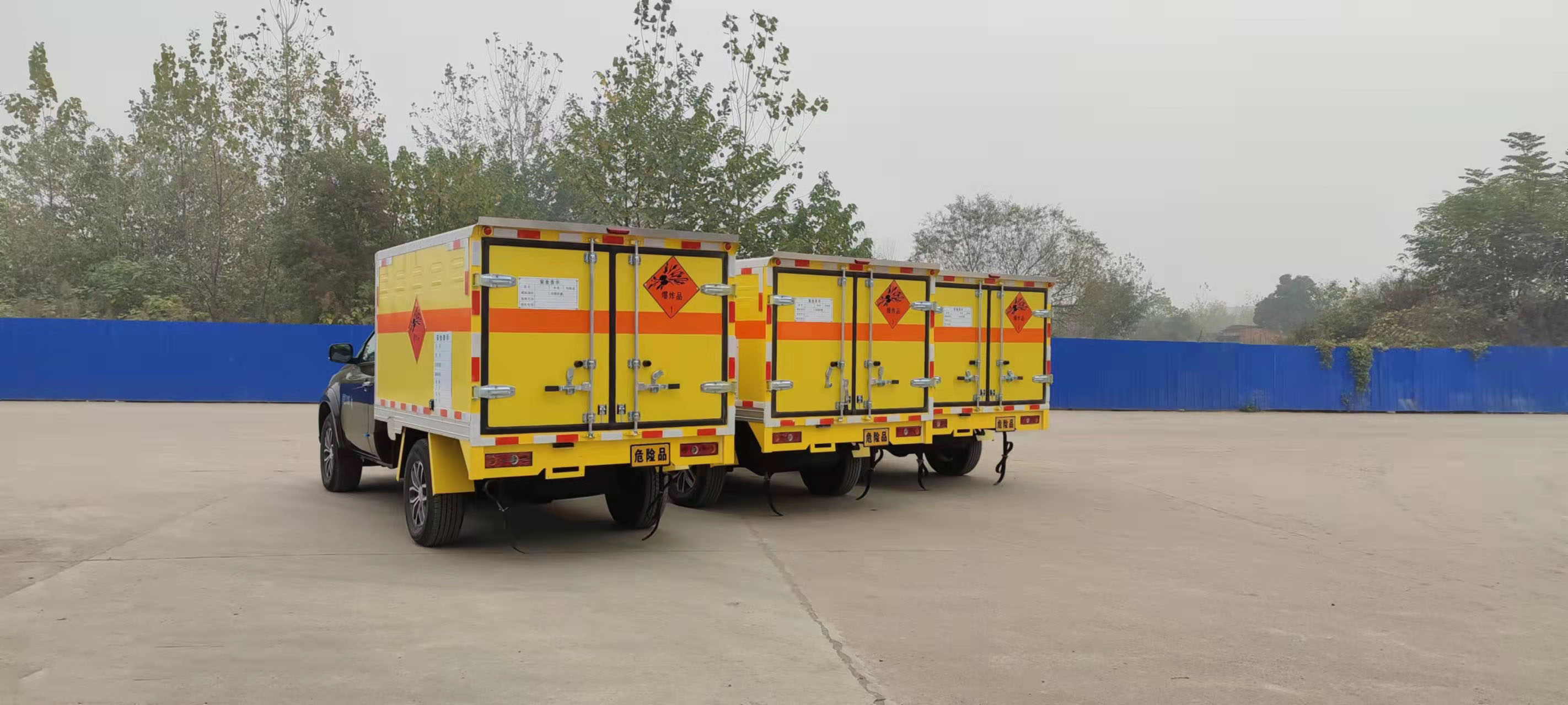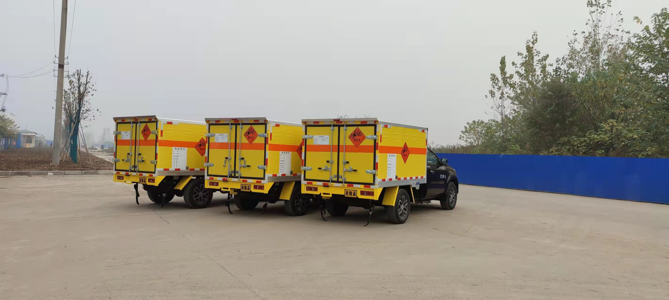江鈴皮卡爆破器材運輸車雙面夾層結(jié)構(gòu),外板采用免漆板有一次性沖壓成型的百葉窗,內(nèi)飾為導(dǎo)電性能良好的鋁板有透氣孔,復(fù)合加鉚合工藝,內(nèi)襯為矩形管骨架牢靠穩(wěn)定,骨架內(nèi)部填充為透氣防潮阻燃材料。廂體外部四周鋁合金型材包邊,底板和車廂前下部鋪橡膠皮,后門雙開,右側(cè)單開側(cè)門,內(nèi)部裝固定貨物的臥環(huán),安裝煙霧報警器、防盜感應(yīng)器。車身附件靜電接地帶、滅火器、防火罩、危險品三角燈、橙色反光帶、CCC反射器、菱形標(biāo)志牌、危險品牌、安全告示齊全。