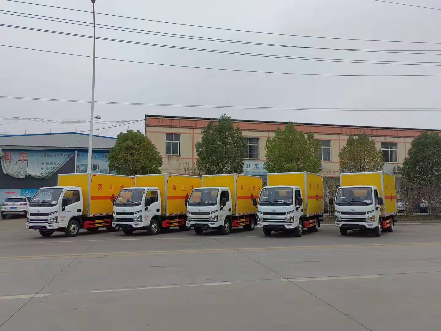 小型民爆物品是目前市場上非常暢銷的車型,尤其專用運輸一類危險品的車輛,為了運輸方便,很多客戶都選擇的是小型柴油民爆車,以下是某礦業公司在我司批量訂購5臺躍進國六民爆車,以下是具體發車實拍: