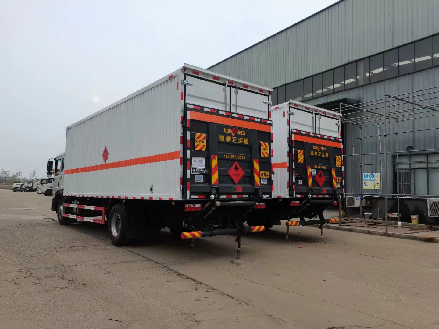 東風D9國六瓦楞板危險品車采用的是專用危化品底盤,可選康明斯220馬力或康明斯230馬力發(fā)動機,該車匹配的是4.5噸前橋,9噸后橋(與天錦系列車型一致噸位,但是論價格東風D9國六危險品車更有優(yōu)勢)。該車選用的是5300mm軸距,貨箱尺寸可選6米8或7米6車型,尾部可選1.5噸或2噸尾板,箱體全部采用的是標準的碳鋼冷軋板折彎而成,箱體右側(cè)帶側(cè)門,方便側(cè)部上下卸貨。選擇該款車型的客戶主要注重的是性價比。該車車輛滿足的是10噸的額載,