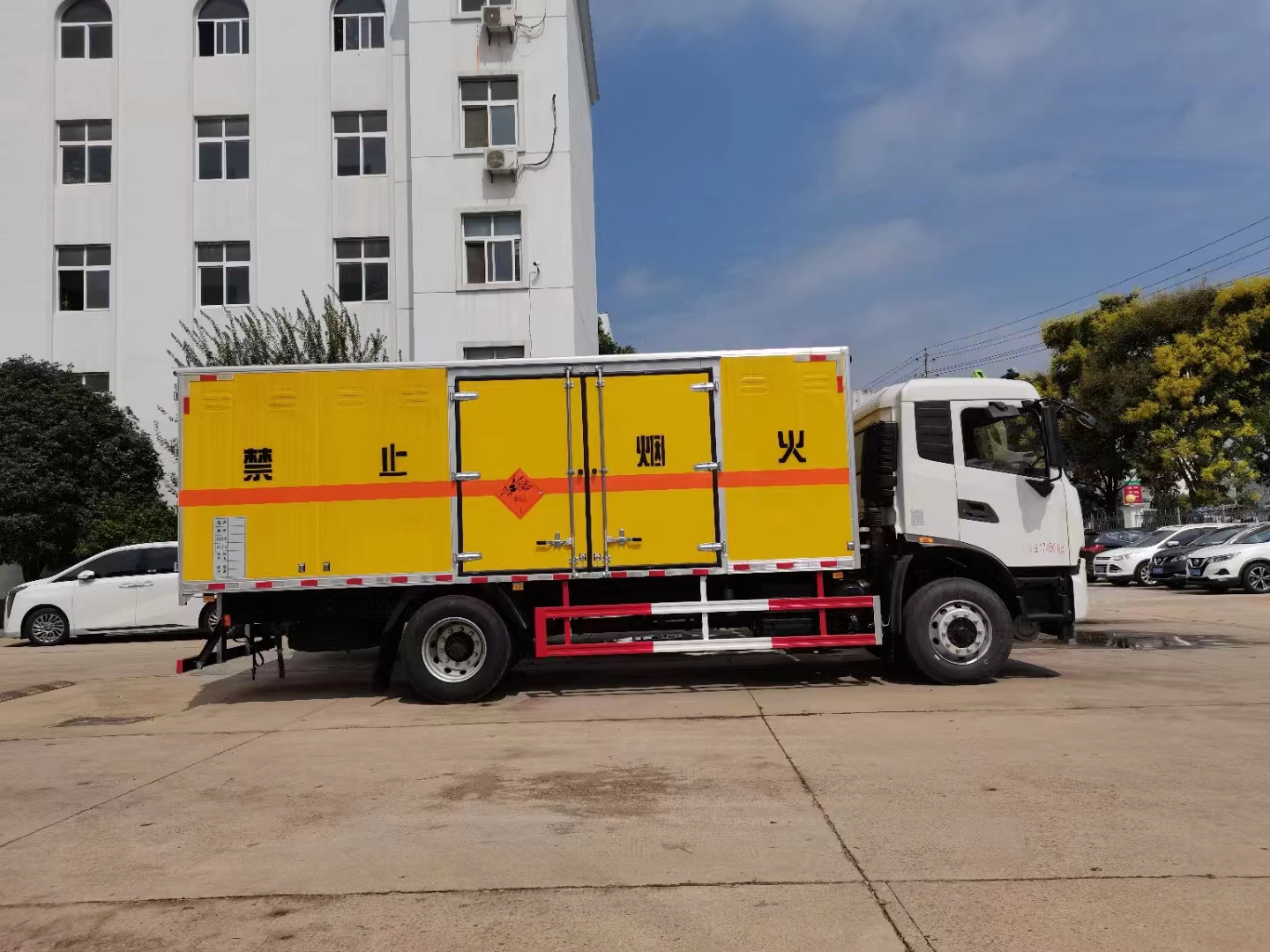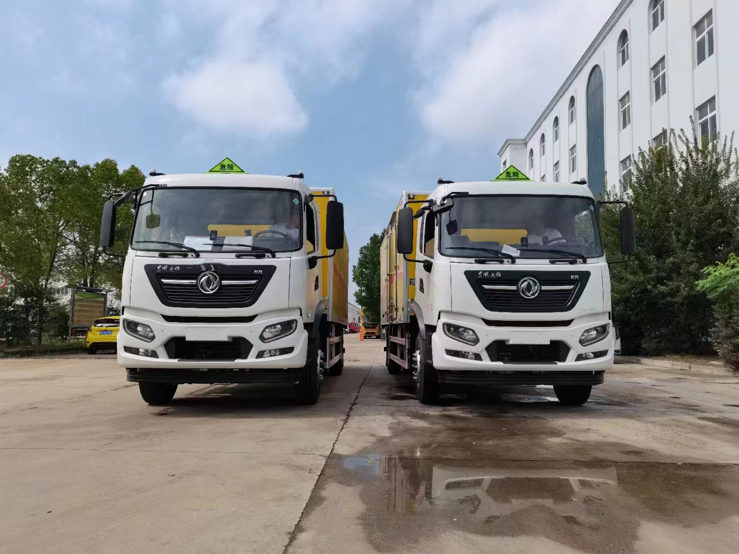 運輸爆破品、吙工品、雷罐炸薬等物品均屬于一類;,需要專用的車輛進行運輸,尤其是10噸左右的車型,根據(jù)運輸工況地不同,定制的車輛不一樣。用戶因為倉庫和路況的原因以及風(fēng)阻的原因,定制與駕駛室齊平的箱體較多,以下是湖南定制定制的2臺東風(fēng)天錦國六爆破器材運輸車,以下是詳細配置介紹: