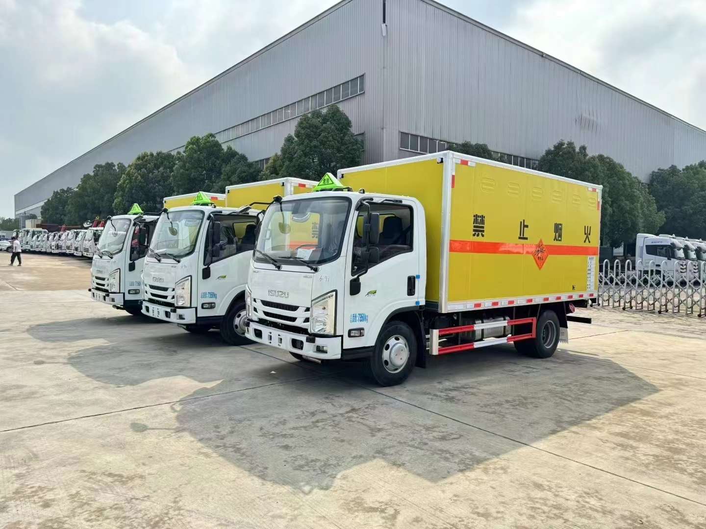 雖然煙花行業高溫假來臨,但是一類危化品車的使用仍然沒有停止。爆破器材運輸車的使用需求量仍然是與日劇增。以下是溫州李總批量訂購的黃牌五十鈴爆破器材運輸車,以下是具體發車實拍: