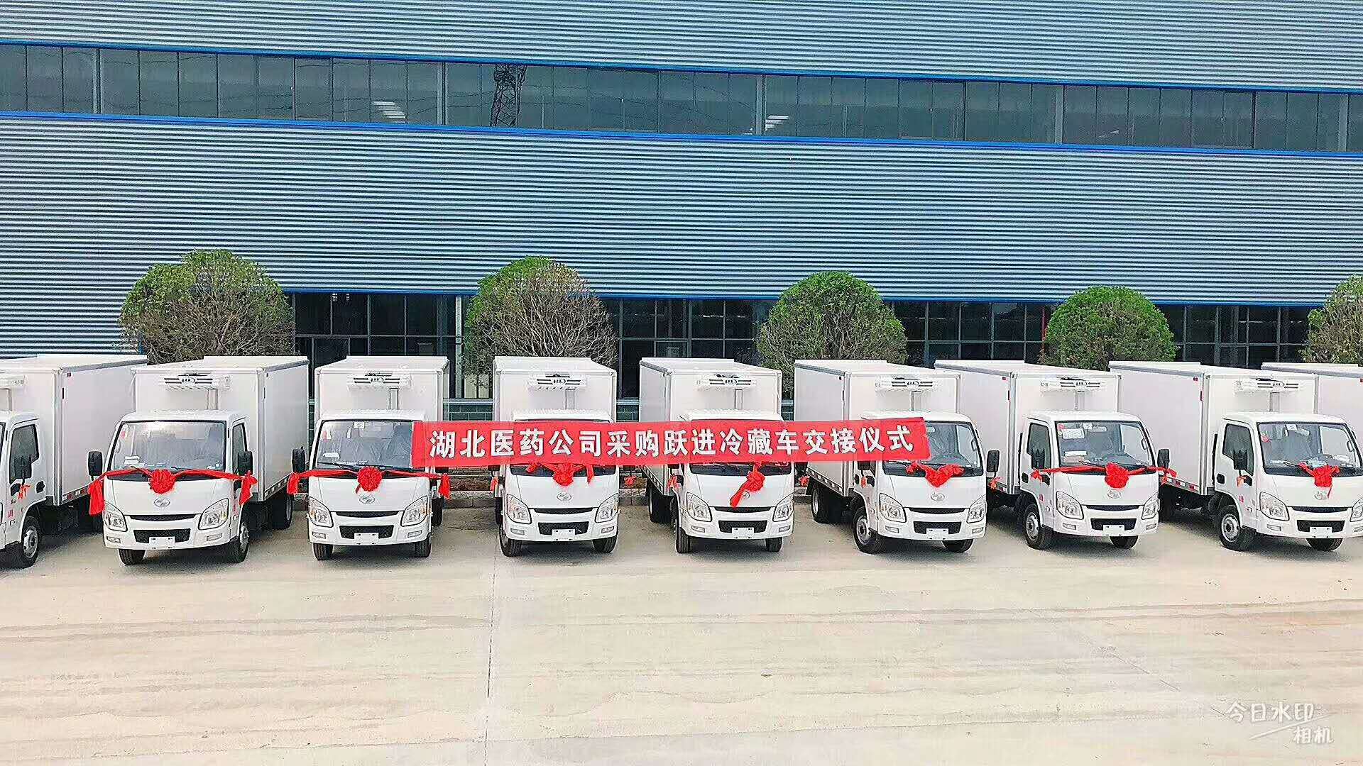 熱烈祝賀湖北醫藥公司批量采購上汽躍進小福星冷藏車首批十臺順利交接,第二批十臺正在全力生產中!躍進小福星冷藏車采用云內95馬力發動機,2650軸距或者2800軸距,2噸后橋,油剎(前碟后鼓),手動玻璃門窗,方向助力,前盤制動,電熄火,前霧燈,前后減震。