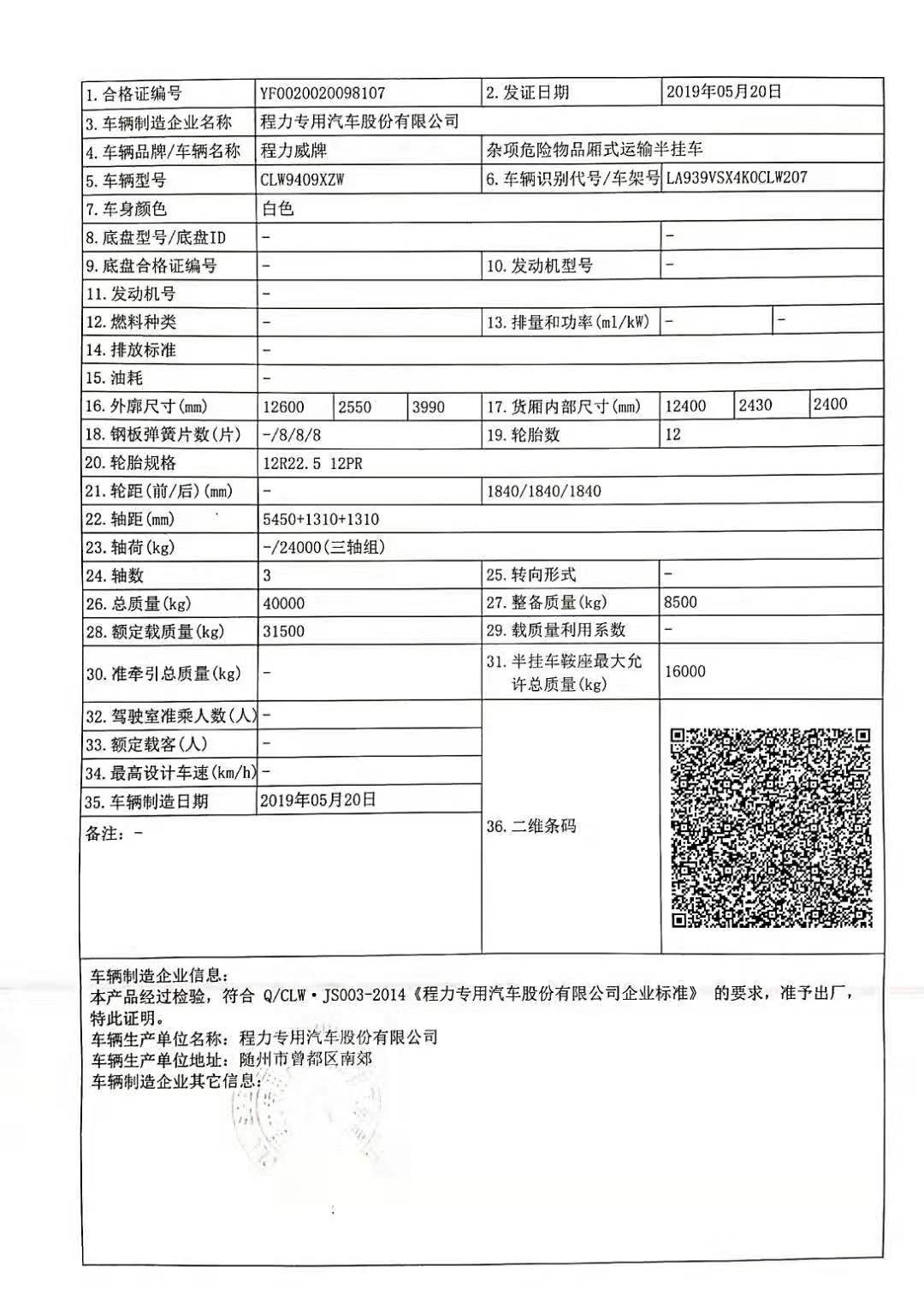 很多客戶因?yàn)檎哂绊懖桓疫x擇購買危險(xiǎn)品車,截止目前我司得到最新消息:半掛運(yùn)輸車不受安全達(dá)標(biāo)影響,雜項(xiàng)半掛危險(xiǎn)車任性購!目前程力專汽車間生產(chǎn)有九類雜項(xiàng)危險(xiǎn)品廂式運(yùn)輸半掛車現(xiàn)車兩臺(tái),客戶來廠即可辦手續(xù)提車即走!需要購車的客戶抓緊時(shí)間預(yù)訂!