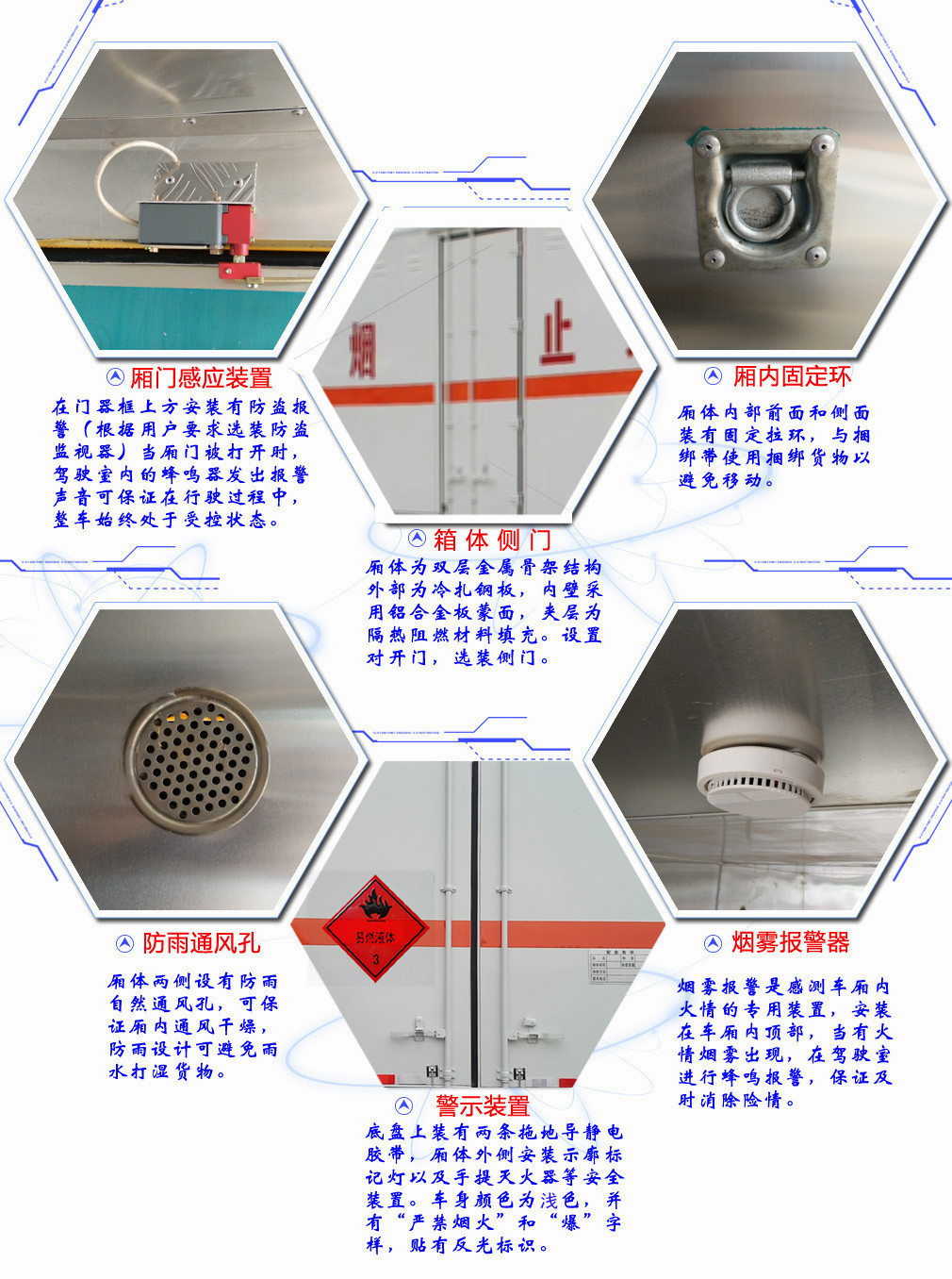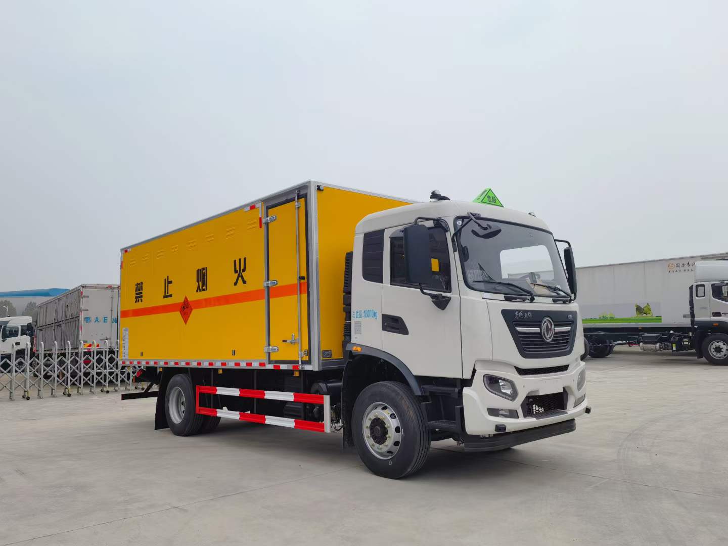 該車為危險品運輸車.該車頂部封閉,不可開啟.隨底盤選裝駕駛室.用于運輸具有獨立容器(瓶)包裝的劇毒氣體,類項號:2.3,用于運輸獨立容器(瓶)包裝的毒性氣體:類項號:6.1,6.2.僅采用排氣管前置,子午胎,限速裝置,輔助制動裝置和前盤制動器的底盤;限速80km/h. |
