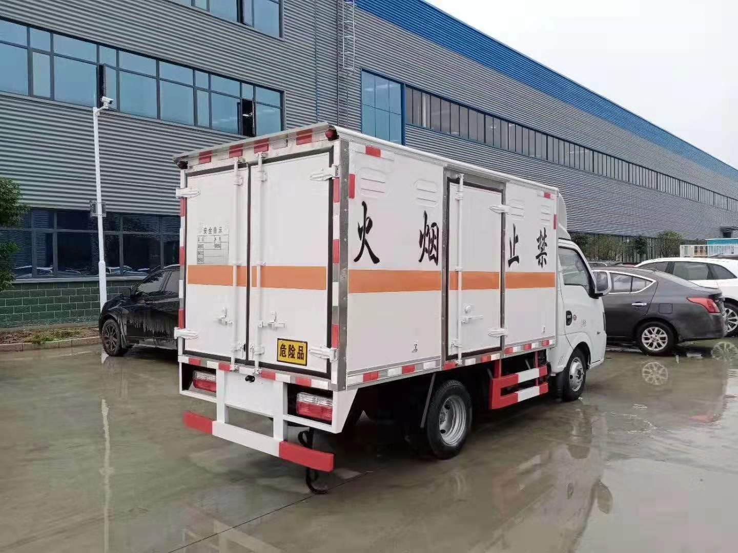 廂體配置:廂體尺寸:3000*1675*1500*1700.廂體為雙層金屬結構,廂體尾部雙開門,外板采用靜電屏蔽冷軋鋼板,中間填充B1防阻燃泡沐,內飾為鋁板。廂體上側安裝防雨通風透氣孔。底板為花紋板,上鋪防靜電膠皮,廂內兩側加裝固定貨物臥環,門框內帶防盜報警器,頂部帶煙霧報警器,底盤上裝有兩條拖地導靜電膠帶,廂體外側安裝示廓標記燈及手提滅火器等安全裝置。