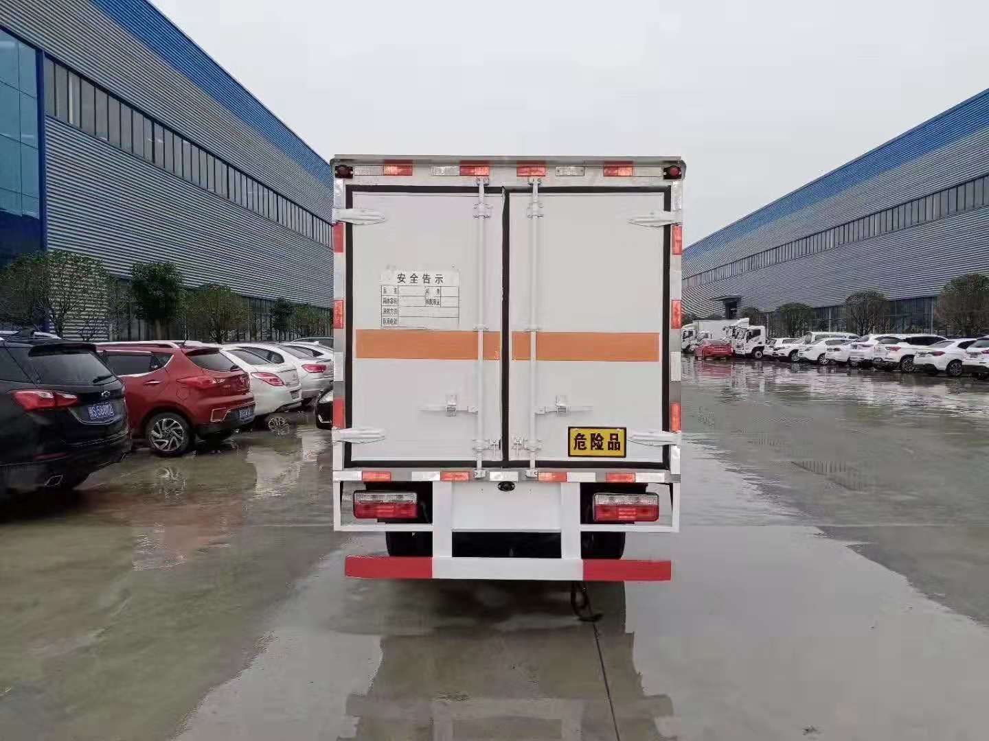 該車適用于運輸危險品。整車長/軸距/后懸對應關系為(mm):5150/2850/1210,5150/2650/1410,4950/2850/1010,4950/2650/1210,安全裝置為導靜電帶,用于防止靜電。該車主要用于運輸獨立容器包裝的介質:粘合劑,涂料,煤油,苯,甲醇,乙醇,丙酮,甲苯,二甲苯,類項號:3。