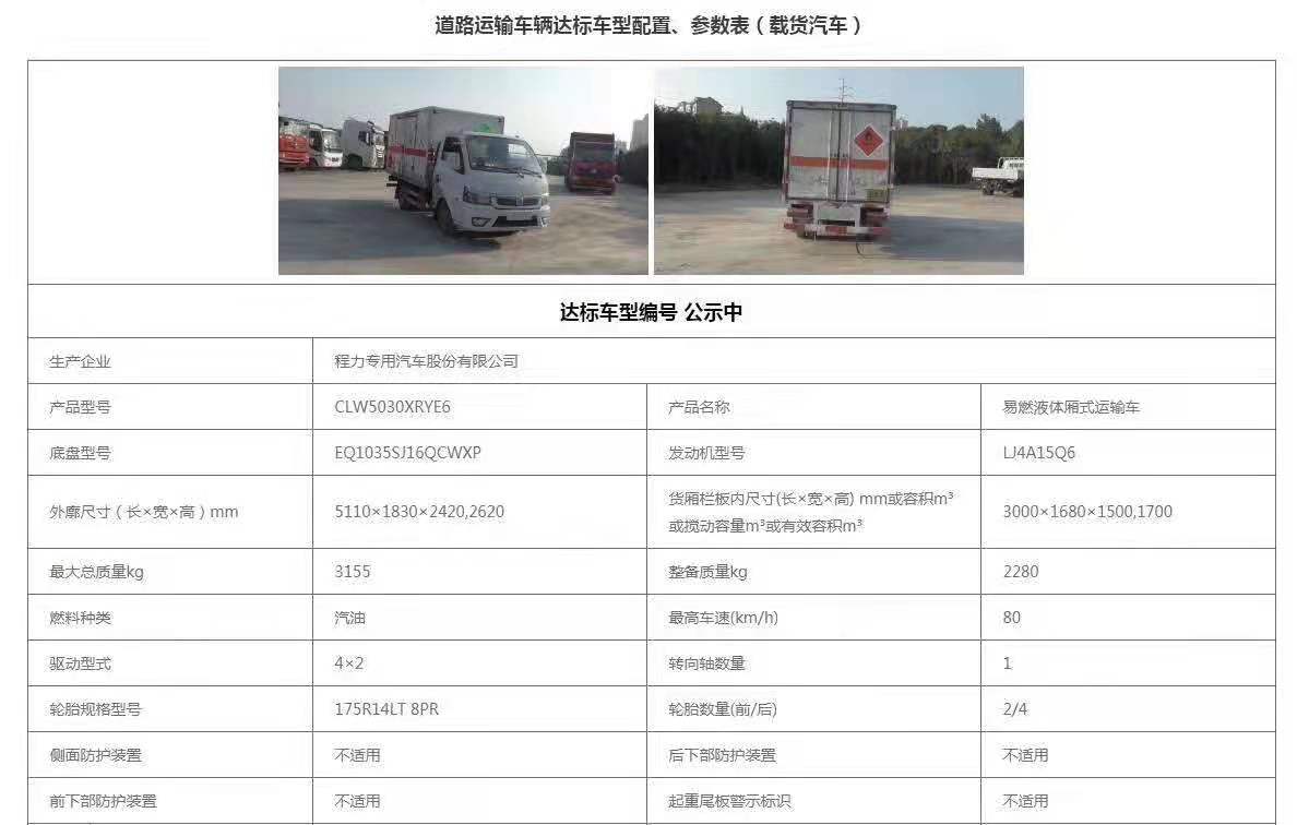 目前東風途逸國六易燃液體廂式車安全達標已公示,客戶可安心購買,該車為國六排放標準,各地上戶無憂!我司常年備貨現車,歡迎各新老客戶預定!