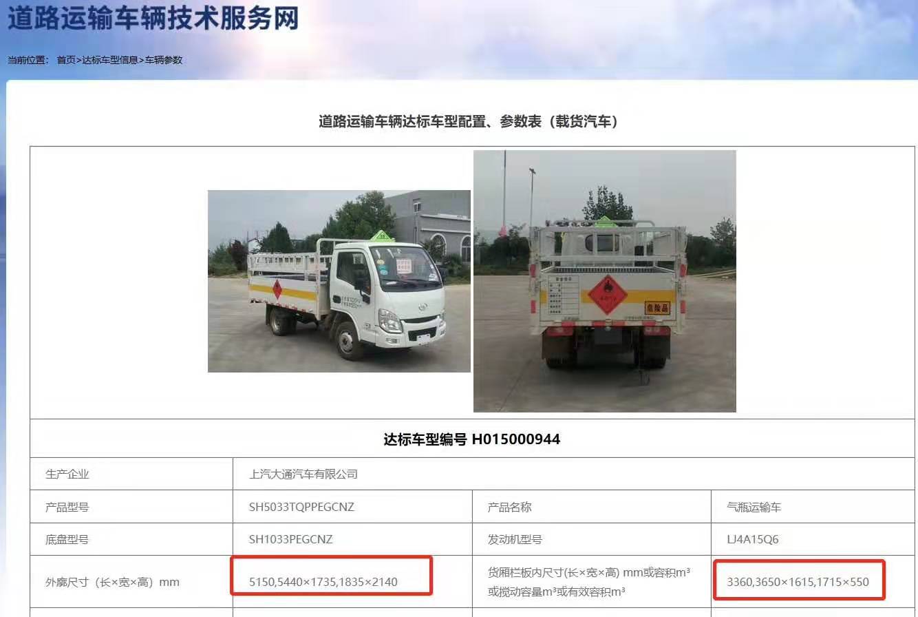 上汽躍進國六氣瓶運輸車整車型號:SH5033TQPPEGCNZ,底盤型號:SH1033PEGCNZ,廂體尺寸:3360,3650*1615,1715*550,總質(zhì)量3220kg,額定載質(zhì)量1375kg,2650mm軸距,185/65R15LT 10PR輪胎,LJ4A15Q6發(fā)動機,國六排放。