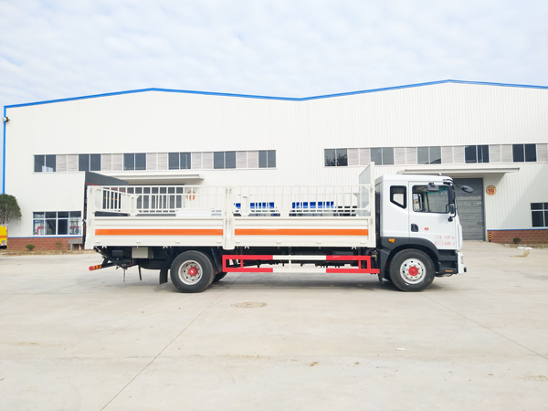 東風(fēng)D9額載10噸氣瓶運輸車采用原廠危貨底盤,5200mm軸距,6檔變速箱,帶ABS,前盤制動,限速器,排氣管前置,9.00R20輪胎,發(fā)動機(jī):ISD160 50,防飛濺,自動調(diào)整臂,帶原廠空調(diào),貨箱配置:整車尺寸:9000X2550X3020,貨箱長寬高:6750X2350X600(單位毫米),廂體為金屬骨架結(jié)構(gòu),廂體生產(chǎn)工藝采用4mm底板,鋪靜電膠皮,高600mm的墻板,上側(cè)配可拆卸護(hù)欄。配備隨車工具。可原裝液壓尾板,車輛嚴(yán)格按照公告制作。