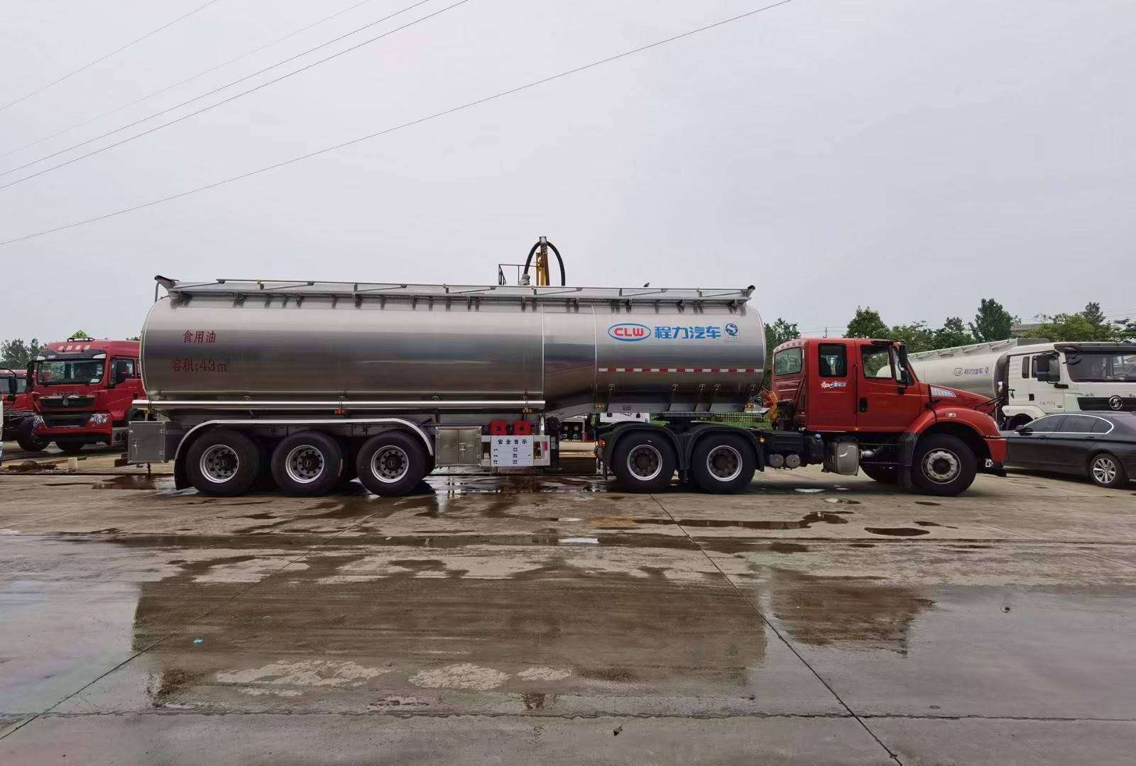 鋁合金運油半掛運輸車壹臺,整車型號CLW9407GYYLV,公告容積:41.6,罐體有效容積:42立方,5182鋁合金板材,罐體6個厚,封頭6個厚,隔板5個厚,單倉帶壹套下裝,帶壹個智能海底閥,帶兩個歐標罐口,12噸廣東富華橋帶盤式制動,12.00R22.5成山真空胎,富華空氣懸掛,帶ABS,90牽引銷,28噸支腿,前后爬梯,其他按廠標。