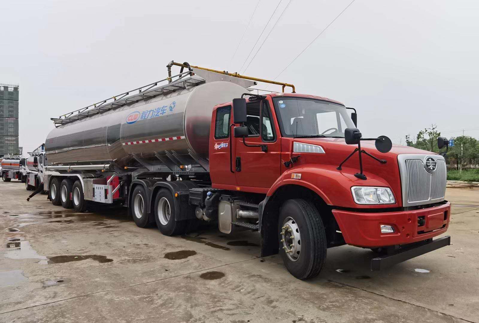 一汽解放尖頭牽引車帶鋁合金半掛油車看起來像極老爺車,給人不一樣的體驗感!河北吳總在我司訂購的牽引頭帶鋁合金半掛油車已完工,以下是具體實拍: