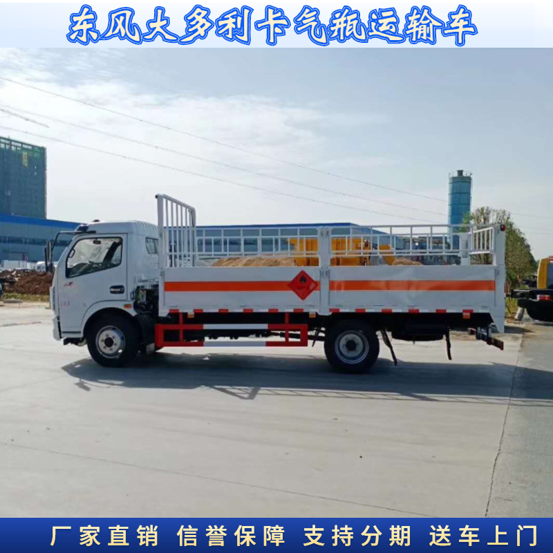 東風(fēng)大多利卡氣瓶車(chē)采用原廠危化底盤(pán),3800mm軸距,2030寬體駕駛室,朝柴156馬力發(fā)動(dòng)機(jī),萬(wàn)里揚(yáng)6檔變速箱,前后橋3.9盤(pán)/6.8噸,8.25R20鋼絲胎,斷氣剎,ABS,限速80裝置,前盤(pán)制動(dòng),排氣管前置,底盤(pán)標(biāo)準(zhǔn)化布置