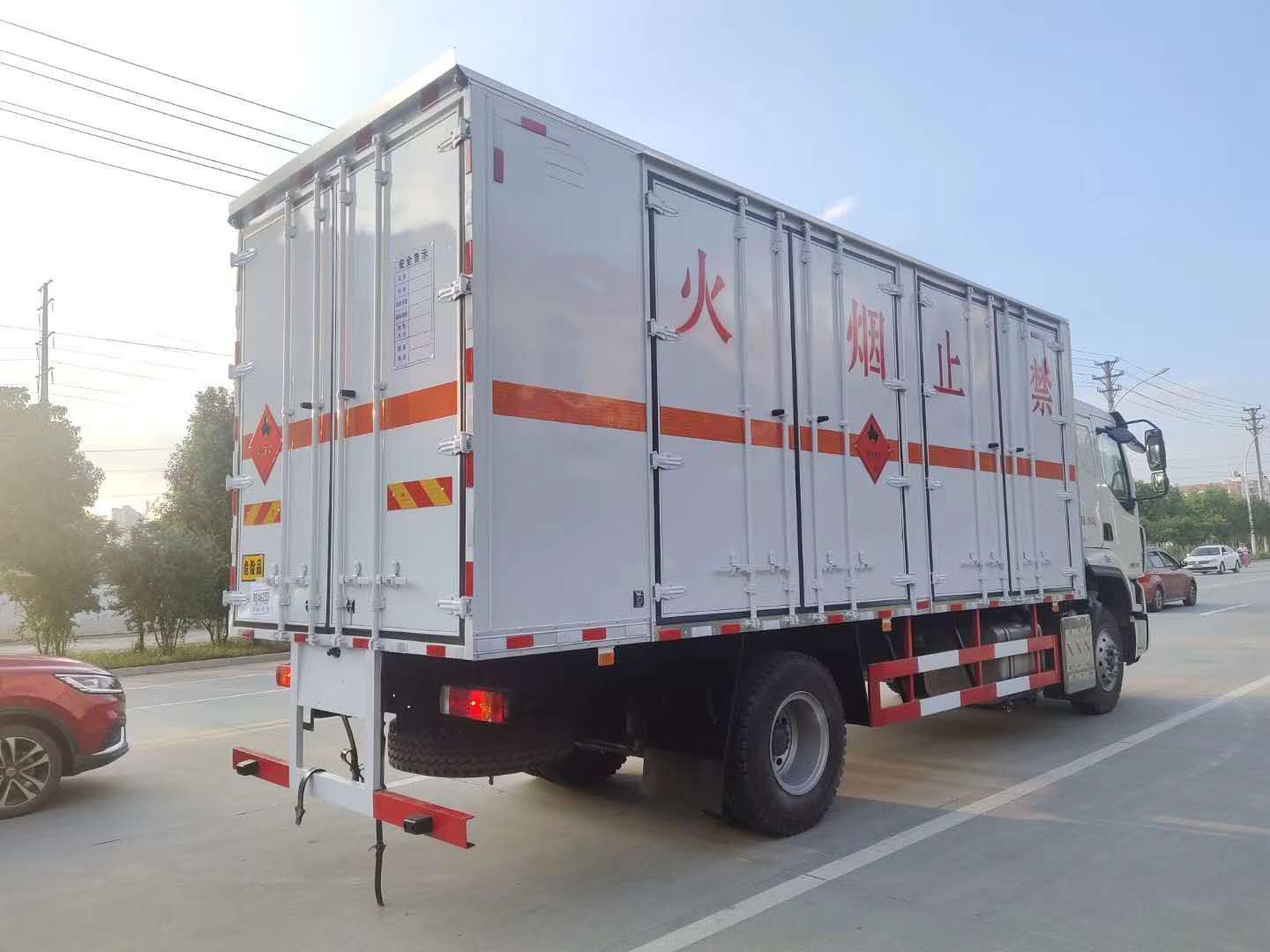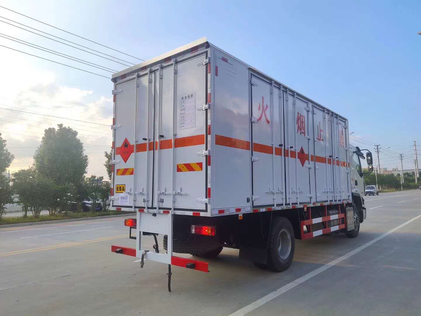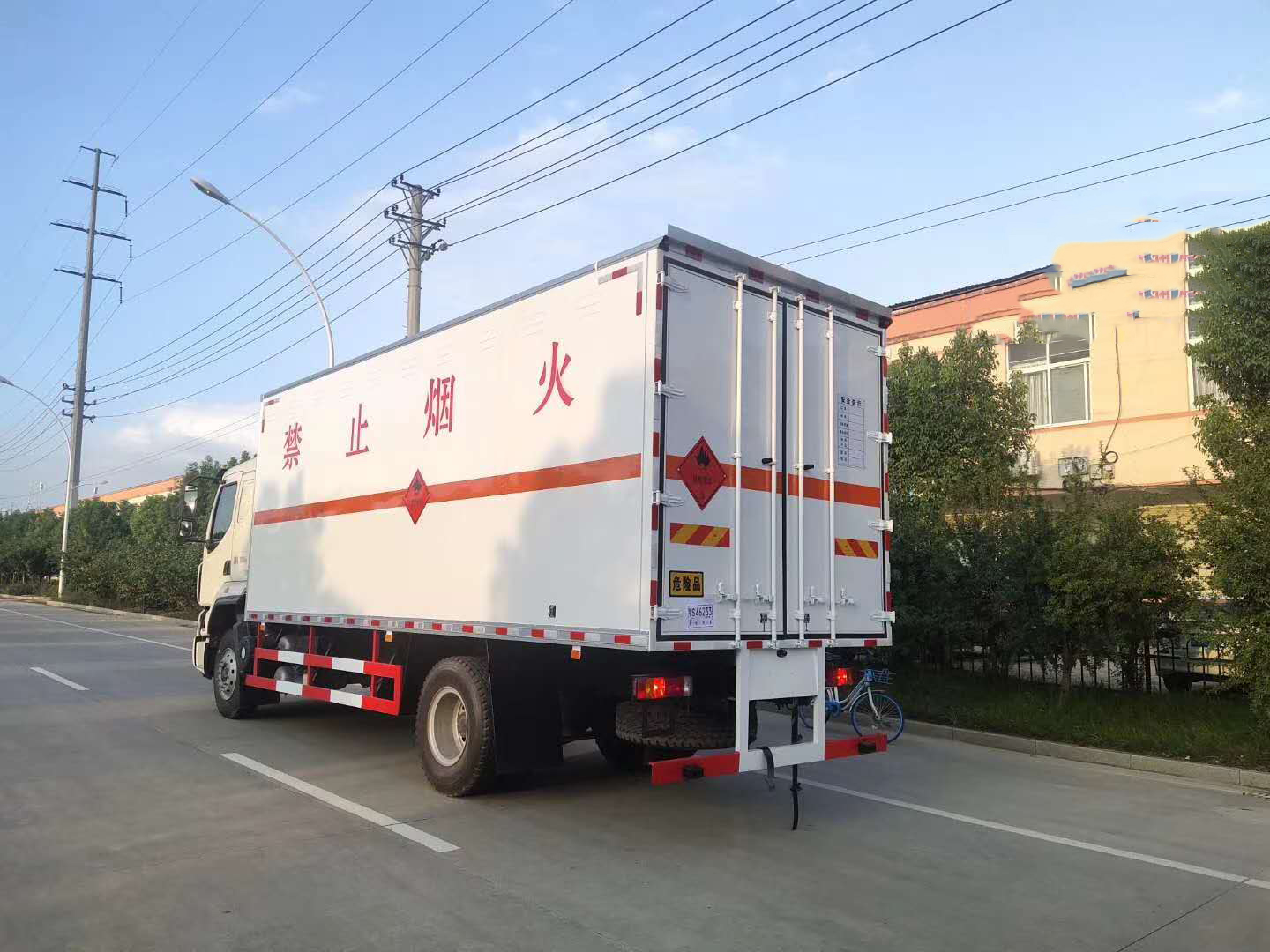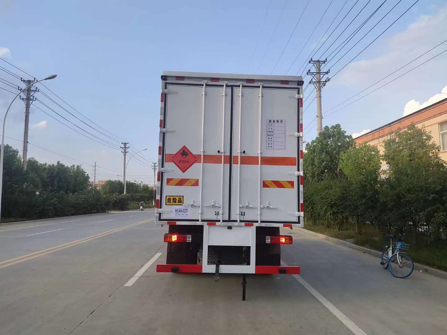柳汽乘龍國六新規危險品車整車尺寸:9000×?2550×3600;廂體尺寸:6600×2420×2200 ,嚴格按照公告尺寸制作,外板采用1mm厚冷軋板有一次性成型的百葉窗,內飾為導電性能良好的鋁板有透氣孔,內襯為矩形管骨架牢靠穩定,內部填充為透氣防潮阻燃的擠塑板,四種材料經現代工藝復合而成,廂體外部上下鋁合金型材包邊,底板和車廂前下部鋪橡膠皮,后門雙開,右側中部雙開門,內部有固定貨物的臥環,車輛外部有靜電帶、滅火器、防火罩,車廂內安裝煙霧報警器和門防盜報警器,嚴格按照國家危險品相關法規張貼。