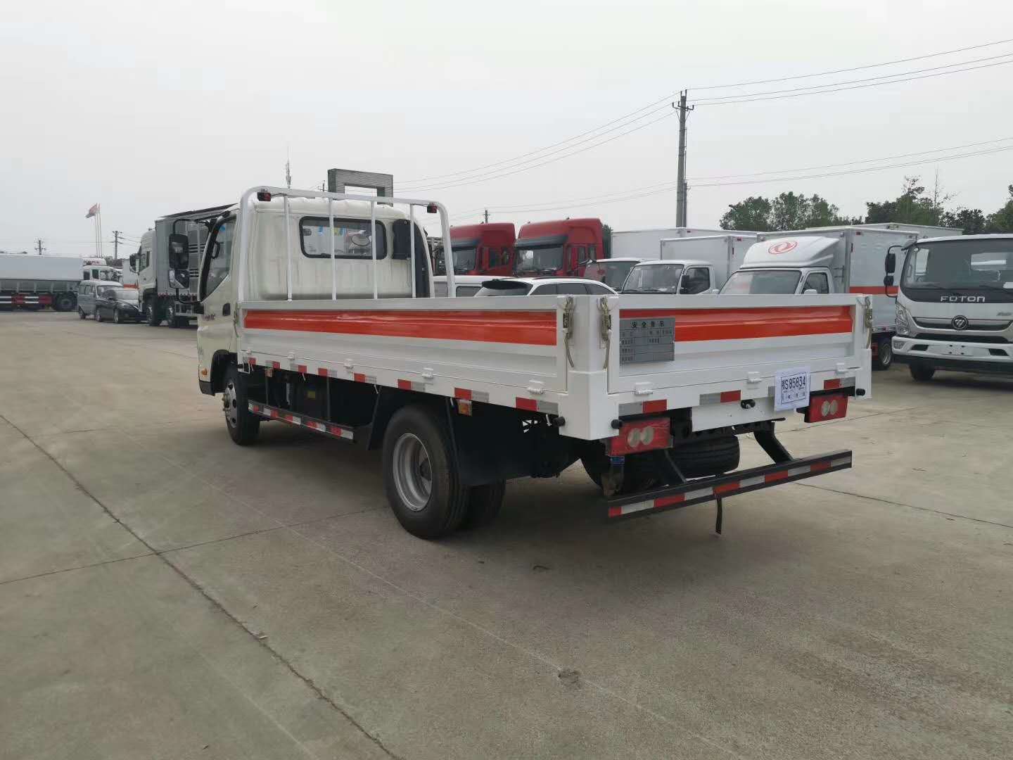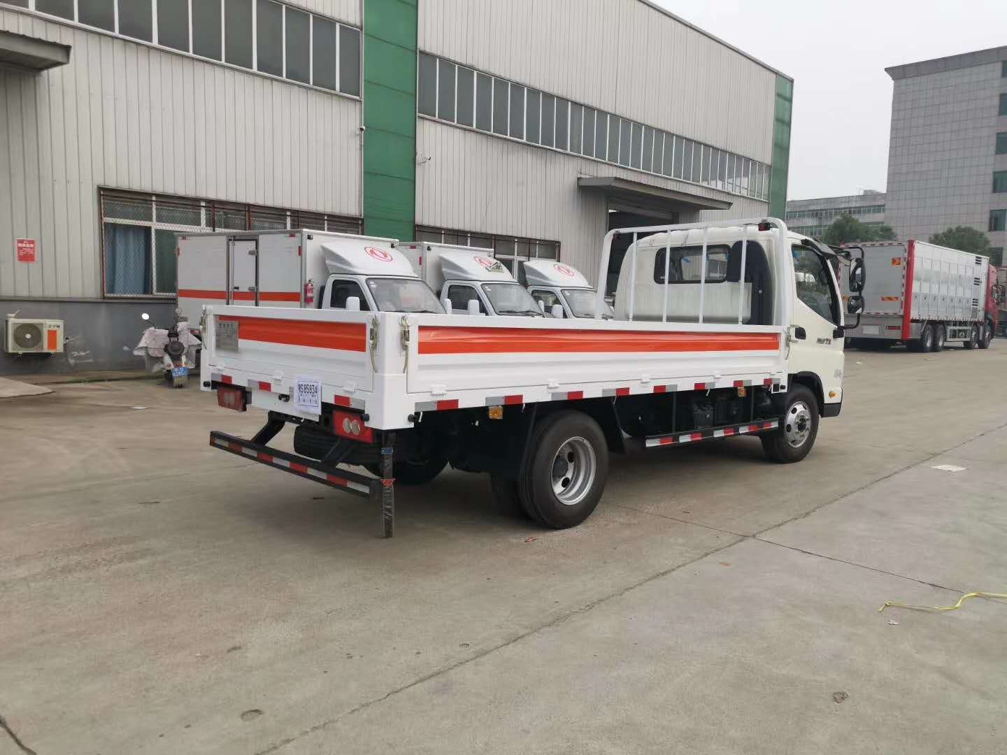 福田奧鈴氣瓶運(yùn)輸車采用欄板高度為550mm,可選擇低欄板或高欄,底板鋪設(shè)防靜電膠皮,底板為花紋板,橫梁和副梁為槽鋼,箱體一周粘貼橙色放光帶,箱體左右后面粘貼 易燃?xì)怏w菱形告示牌,箱體后面粘貼危險(xiǎn)品牌和安全告示。箱體左右安裝2個(gè)滅火器,箱體后尾部安裝2根拖地靜電拖帶!