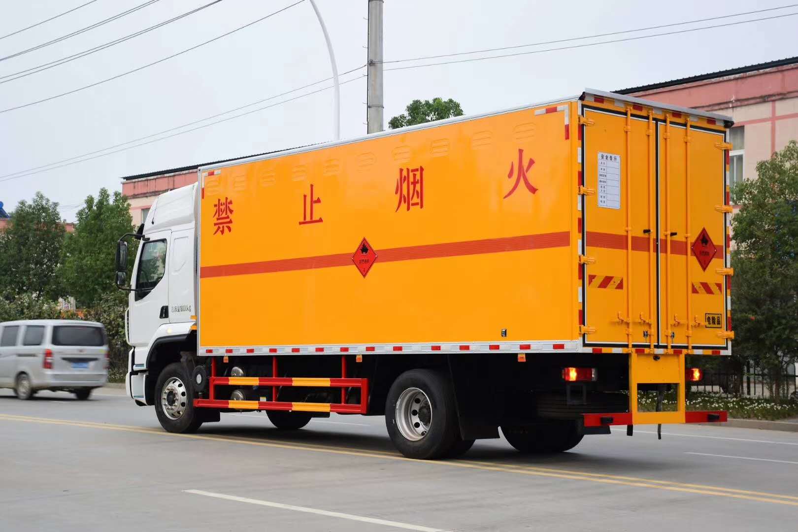東風柳汽單橋國六危險品廂式車采用單橋系列高頂雙臥駕駛室,符合最新規要求配置,現底盤已到貨。目前是提前更新的國六公告,優于同類車型。該車采用350L鋁合金油箱,5100mm軸距,玉柴245馬力,6缸發動機,9噸后橋,275/80R22.5胎,液壓機械翻轉、夾層玻璃、電動玻璃升降器、定速巡航系統、ABS、行駛記錄儀+兼容北斗GPS),中控鎖、空調,真皮多功能方向盤、前置排氣管、前輪防爆胎裝置、盤式前橋、ECU限速裝置(限速80km/h)、駕駛室電源總開關,T-BOX、EBS、TPMS、LDWS、FCW。整車尺寸:9000× 2550×3800mm;廂體尺寸:6600×2420×2420mm, 嚴格按照公告尺寸制作,外板采用1mm厚冷軋板有一次性成型的百葉窗,內飾為導電性能良好的鋁板有透氣孔,內襯為矩形管骨架牢靠穩定,內部填充為透氣防潮阻燃的擠塑板,四種材料經現代工藝復合而成,廂體外部上下鋁合金型材包邊,底板和車廂前下部鋪橡膠皮,后門雙開,右側中部雙開門,內部有固定貨物的臥環,車輛外部有靜電帶、滅火器、防火罩,車廂內安裝煙霧報警器和門防盜報警器,嚴格按照國家危險品相關法規張貼。