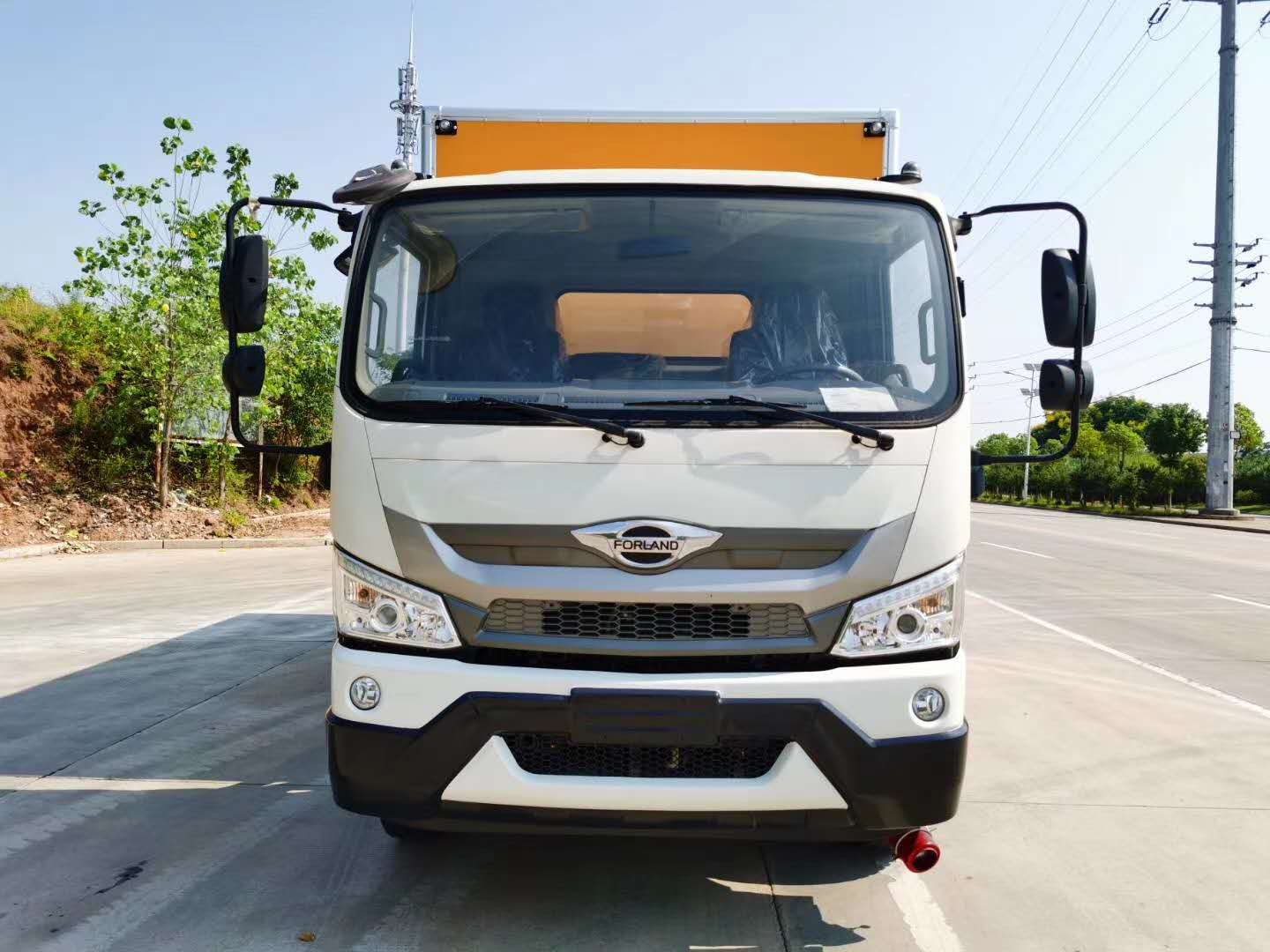 福田瑞沃ES國六爆破器材運(yùn)輸車外形尺寸為:7250*2250*3280mm,廂體尺寸為:5180*2100*2000mm,總質(zhì)量為11995kg,額定載質(zhì)量6080kg,整備質(zhì)量5720kg,廂體為雙層金屬骨架結(jié)構(gòu),外層為武鋼冷軋鋼板,中間為B1級(jí)阻燃泡沫,內(nèi)壁采用鋁合金板蒙面,并用鋁合金型材收邊。廂體兩側(cè)帶透氣孔,廂內(nèi)選裝固定運(yùn)載物的臥環(huán)或卡槽,設(shè)置對開后門,如需安裝防爆容器罐,則可以選裝前開門。