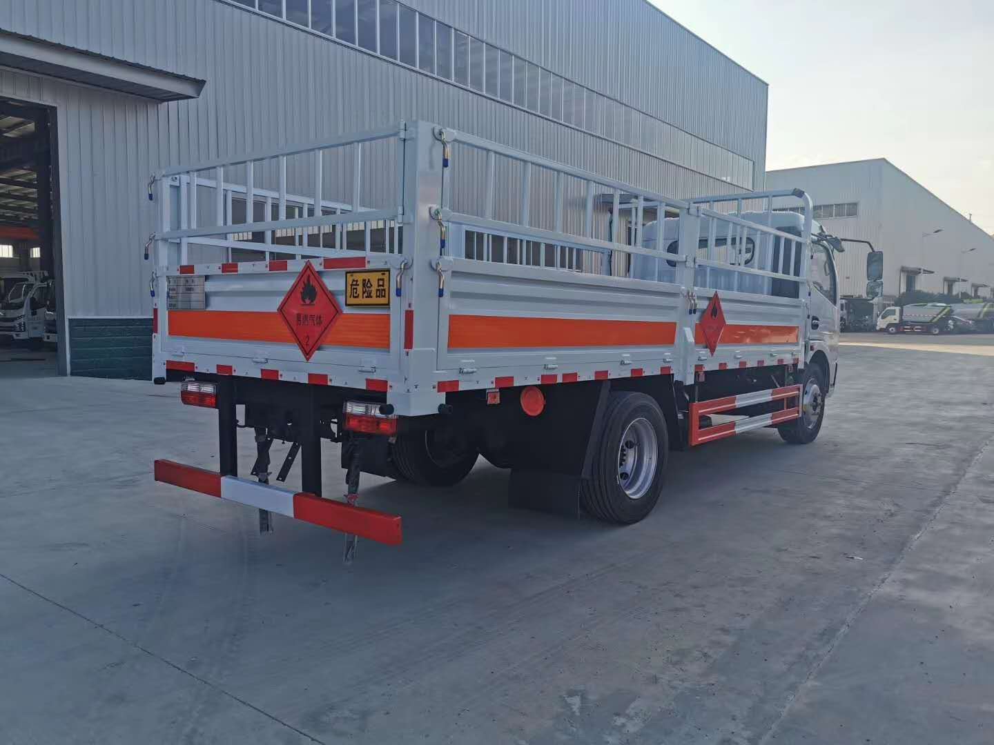 東風大多利卡國六氣瓶運輸車采用D7系列2030單排駕駛室,原廠危貨底盤,2.7噸前橋,5.5噸后橋,斷氣剎,192雙層大梁,245真空胎,玉柴150馬力發動機,小八檔變速箱帶高低檔,帶空調,電動門窗,中控鎖。