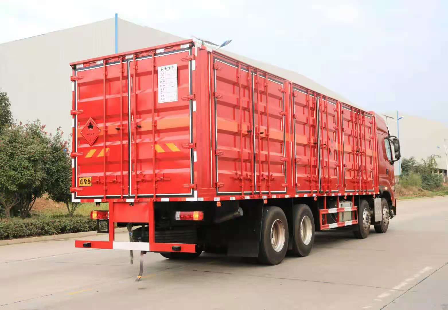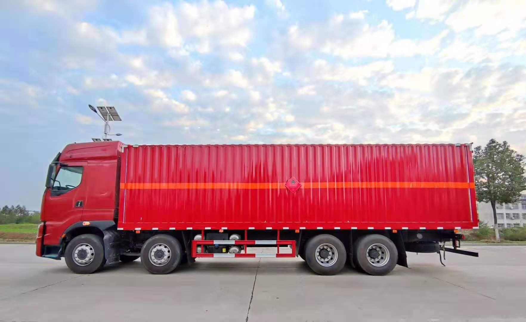 危險品車一直是市場上非常熱銷的產品,尤其是長途運輸的車型。目前9.6米的車型非常受歡迎,程力專汽為您推薦柳汽四軸瓦楞板危險品車廂式運輸車,具體如下: