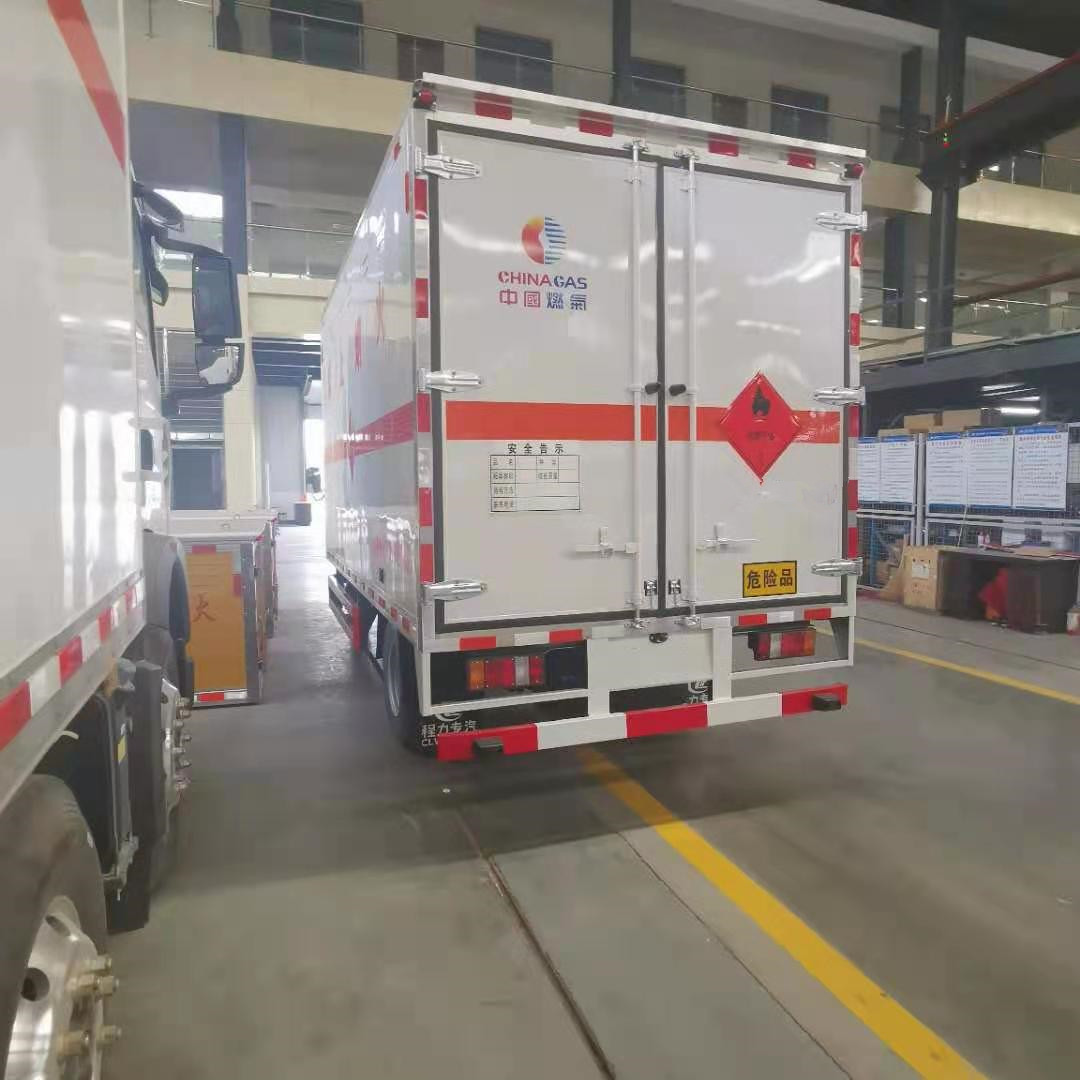 江鈴國六危險品車嚴格按照公告尺寸制作,底板上鋪靜電膠皮,配備滅火器,三角頂燈,靜電拖帶等,嚴格按照國家危險品法規進行“易燃氣體”標識粘貼等。廂體嚴格按照公告尺寸及外觀制作。危險品車廠家定制熱線:13872880150陳經理/18372237788楊經理,公司網站:www.gzebuy.com.cn,程力專汽愿竭誠為您服務!廂體外板采用1.2mm厚冷軋板,上部留有一次性沖壓成型的百葉窗,內飾導電性能良好的鋁板并帶有有透氣孔,內襯矩形管骨架牢靠穩定,內部填充透氣防潮阻燃的泡沫板,四種材料經現代工藝復合加工而成;廂體外部上下鋁合金型材包邊,底板和車廂前下部鋪設防靜電橡膠皮,內部安裝有固定貨物的臥環,四周安裝防撞護板,廂體一側可選裝側開門。