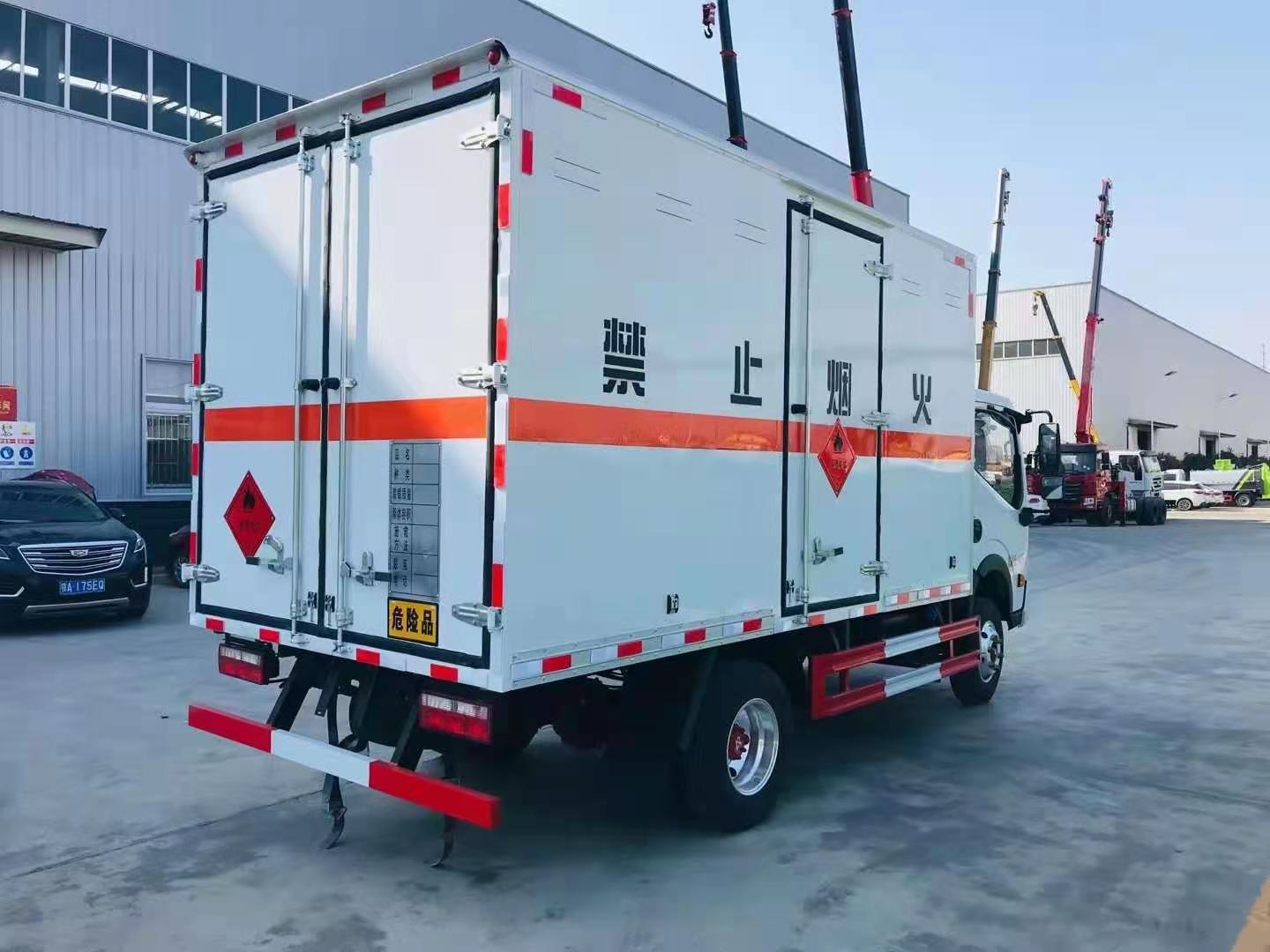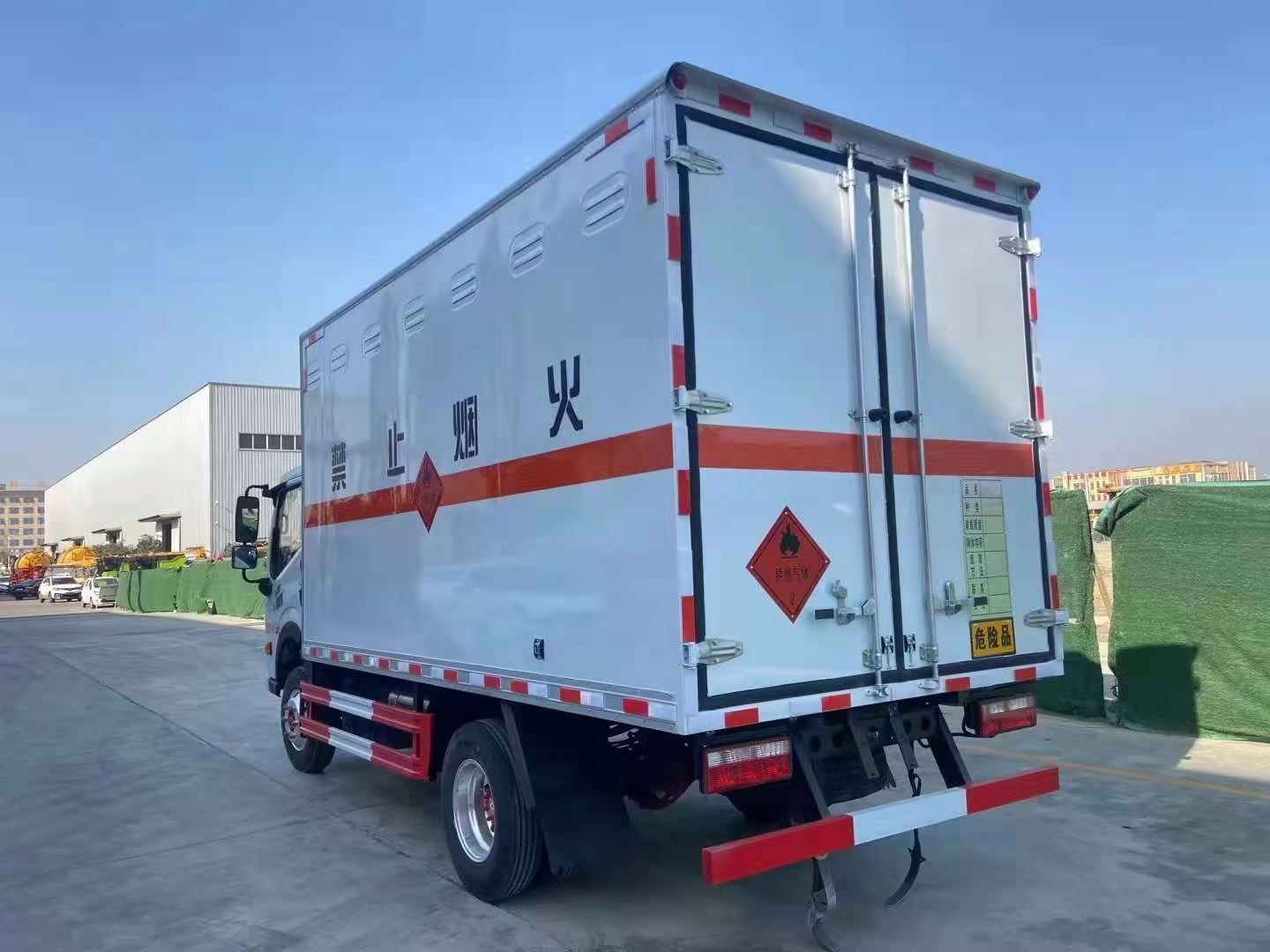 國六東風多利卡氣體廂式運輸車可上藍牌950KG,也可上黃牌3800KG。采用雙組份丙烯酸油漆,固含量高,漆膜硬度可達到2H,高硬度高彈性戶外7-8年的保光保色期限,耐候性強耐磨耐腐蝕抗氧化。廂體底盤采用無廢料拼接,密封性更好?捎行Х乐惯\載物滲漏。同時無底料拼接可以使貨物受力更均勻,不易變形,經久耐用。廂體底部與廂體前部鋪設有防阻燃導靜電膠板,與底盤等電位連接,可防止靜電火花產生和車輛靜電及時釋放,提高整車的安全性能。底盤大梁與橫梁采用槽鋼連接。擁有相對更好的韌性,重壓之后保持不易變形,具有良好的承載能力。廂體采用外飾冷軋鋼板,內飾鋁合金板,中間填充隔熱阻燃材料,(選裝側門和隔倉)廂體兩側上方設有防雨功能自然通風窗口,底部鋪有阻燃導靜電膠板,廂體側面裝有固定拉環,與捆綁帶使用捆綁貨物以避免移動。在車廂內頂部安裝感煙報警器,在門器框上方安裝有防盜報警器,廂體外側安裝示廓燈及滅火器支架,配置兩個滅火器,并有“嚴禁煙火”和“爆”等字樣,廂體周邊貼反光標識。后門貼有安全告示,危險品標牌。車輛尾部安裝兩條拖地導靜電膠帶,駕駛室頂部裝有安全三角燈。廂體顏色有:黃、白、灰色等可選。