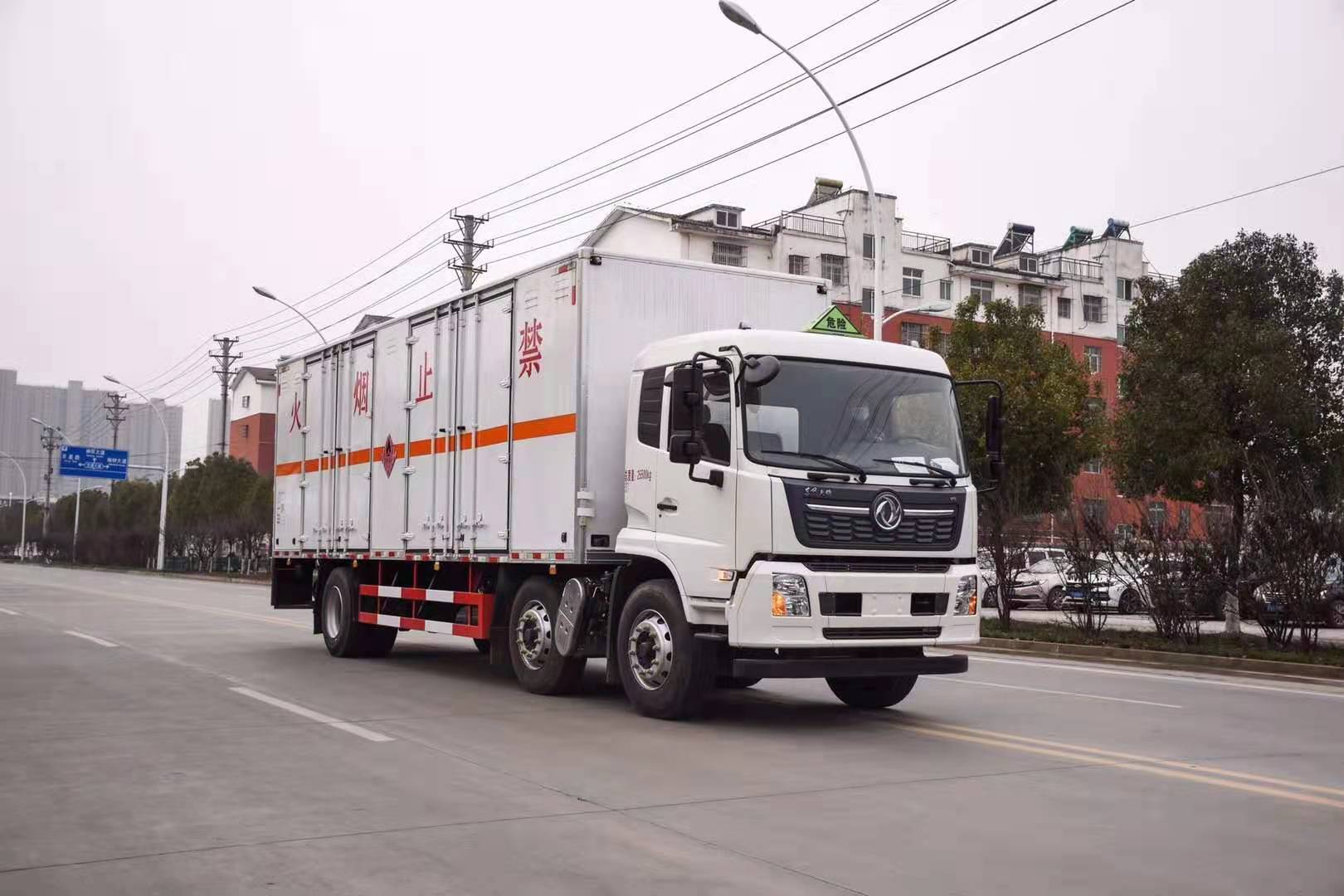 東風(fēng)天錦7米7國六危險品車廂體采用外飾冷軋鋼板,內(nèi)飾鋁合金板,中間填充隔熱阻燃材料,(選裝側(cè)門和隔倉)廂體兩側(cè)上方設(shè)有防雨功能自然通風(fēng)窗口,底部鋪有阻燃導(dǎo)靜電膠板,廂體側(cè)面裝有固定拉環(huán),與捆綁帶使用捆綁貨物以避免移動。在車廂內(nèi)頂部安裝感煙報警器,在門器框上方安裝有防盜報警器,廂體外側(cè)安裝示廓燈及滅火器支架,配置兩個滅火器,并有“嚴(yán)禁煙火”和“爆”等字樣,廂體周邊貼反光標(biāo)識。后門貼有安全告示,危險品標(biāo)牌。車輛尾部安裝兩條拖地導(dǎo)靜電膠帶,駕駛室頂部裝有安全三角燈。廂體顏色有:黃、白、灰色等可選。