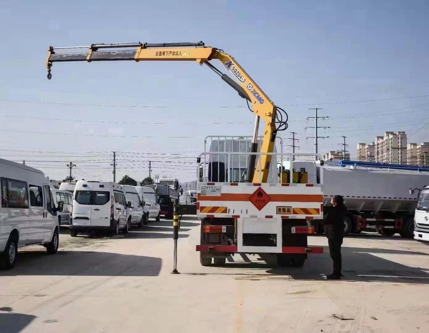 東風(fēng)柳汽單橋國六帶吊氣瓶運(yùn)輸車整車尺寸:9000×2550×3580;廂體尺寸:5800/5400×2420×600/550 。嚴(yán)格按照公告尺寸制作,底板采用5MM花紋板制作,底板上鋪靜電膠皮,低欄瓦楞式,配備滅火器,三角頂燈,靜電拖帶等,嚴(yán)格按照國家危險品法規(guī)進(jìn)行“易燃?xì)怏w”標(biāo)識粘貼等,帶徐工吊(4噸3節(jié)折臂)