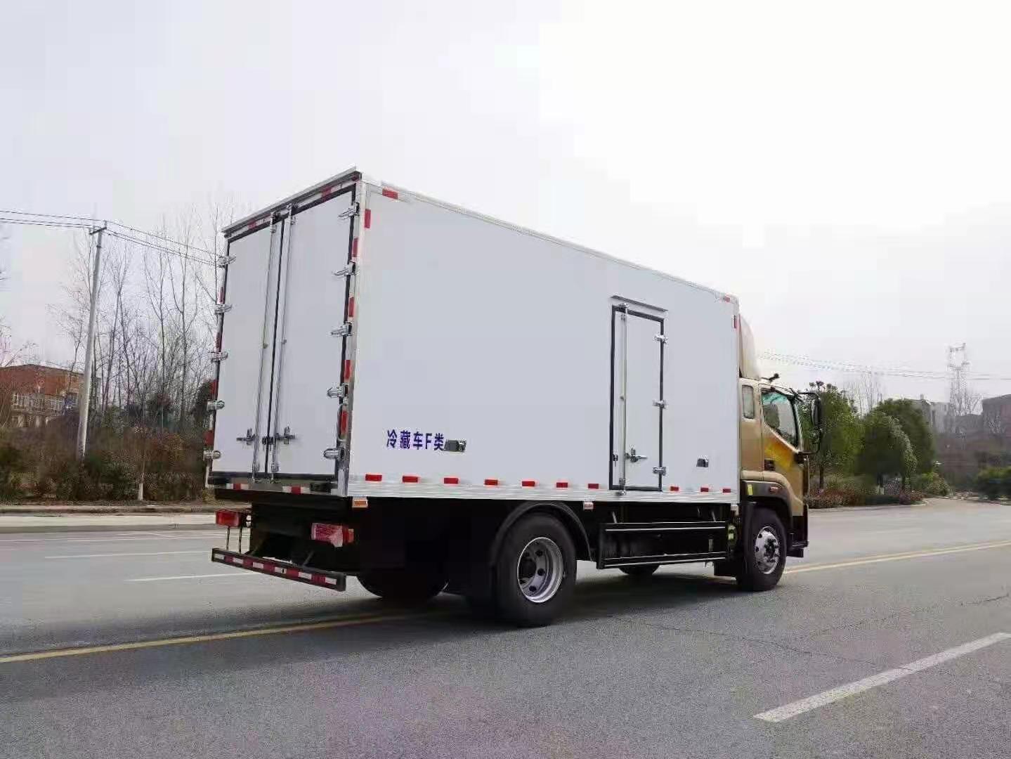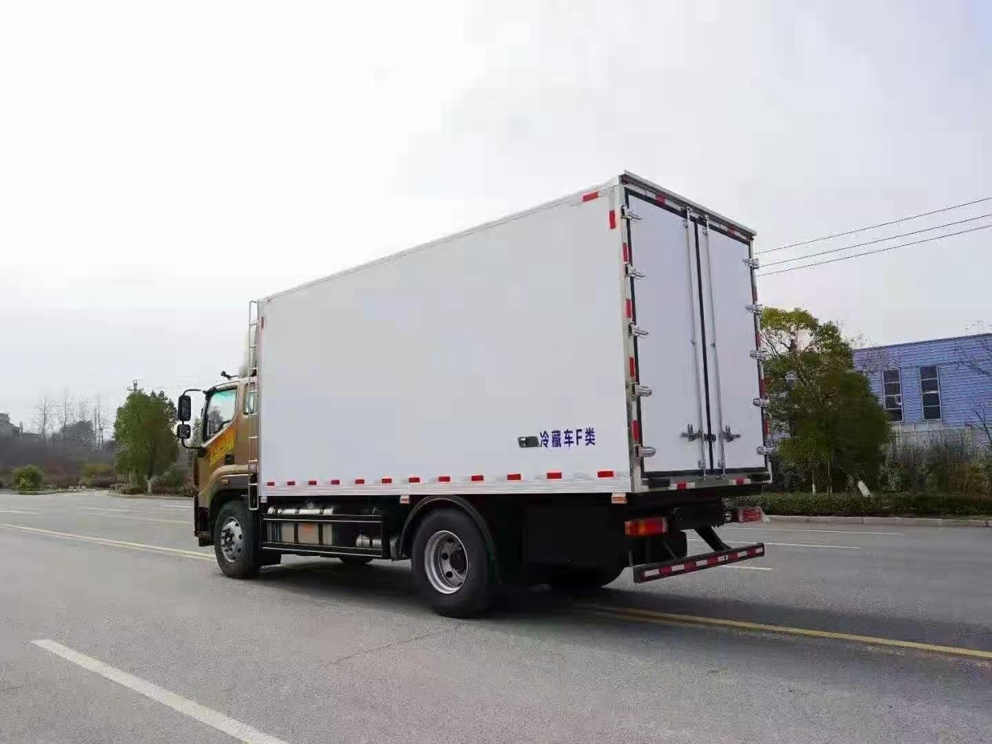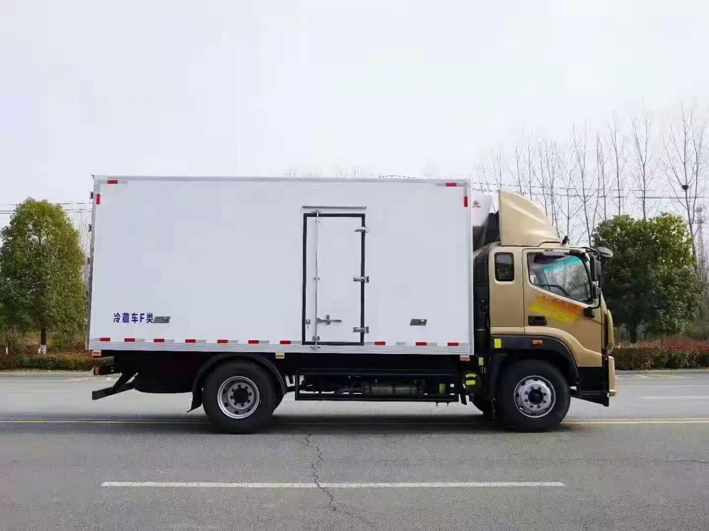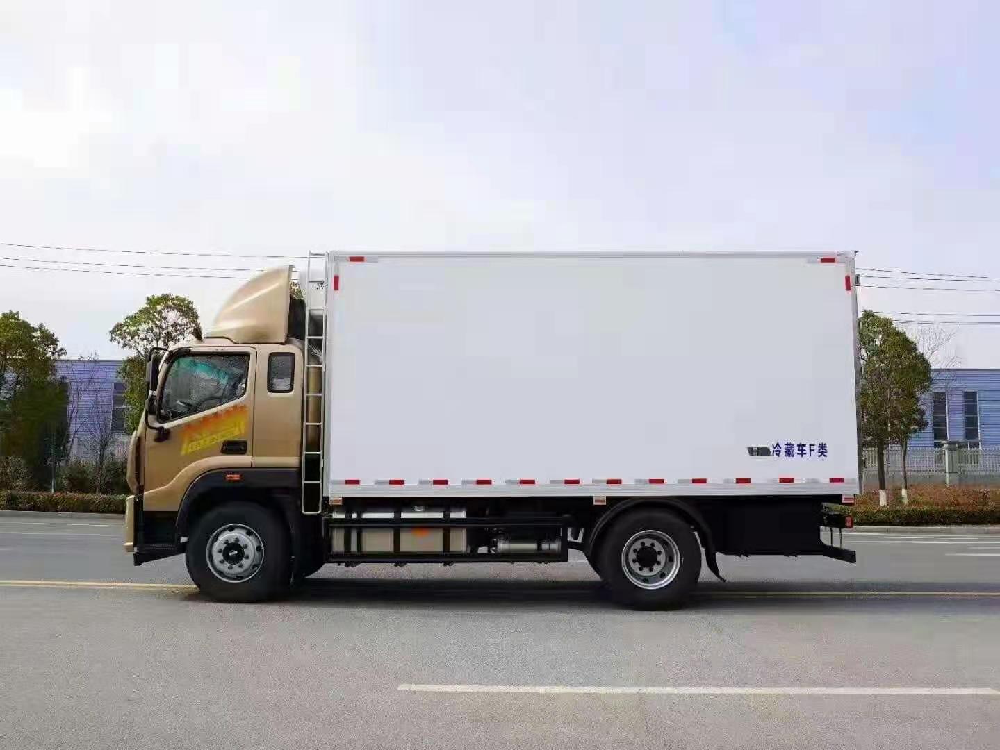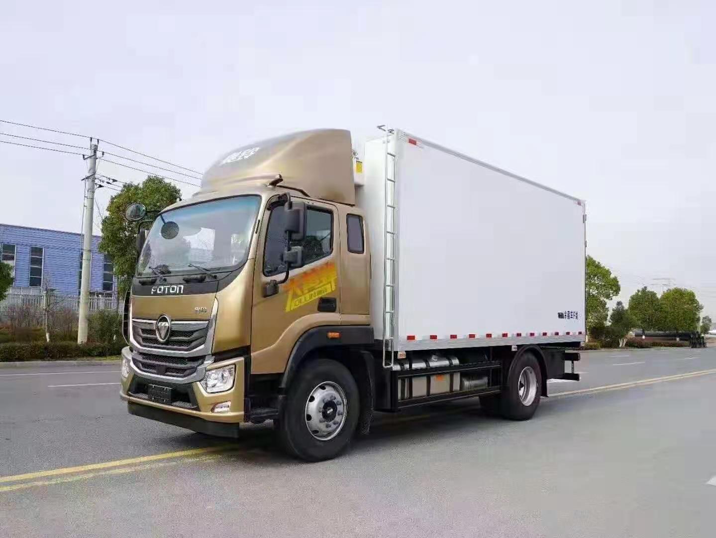 國六福田奧鈴大黃蜂冷藏車BJ5166XLCJPFK-AD1,整車尺寸:7700*2550*3750(mm),箱體尺寸:5300*2450*2500(mm),福田康明斯發動機(F4.5NS6B220),220馬力,新款 2200mm排半駕駛室,法士特8擋箱,8噸后橋,11R22.5真空胎、鋁合金油箱、前后穩定桿、EBP開關、空調、車聯網終端、中控鎖+電動車窗+遙控鑰匙、巡航、MP3、氣囊座椅、剎車自調臂、可調大燈。